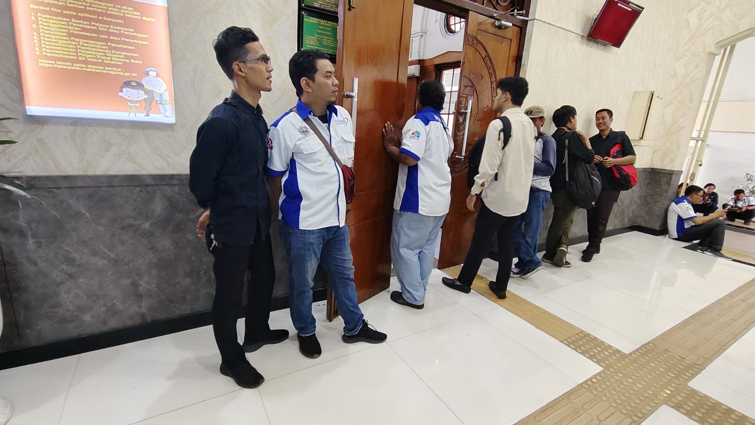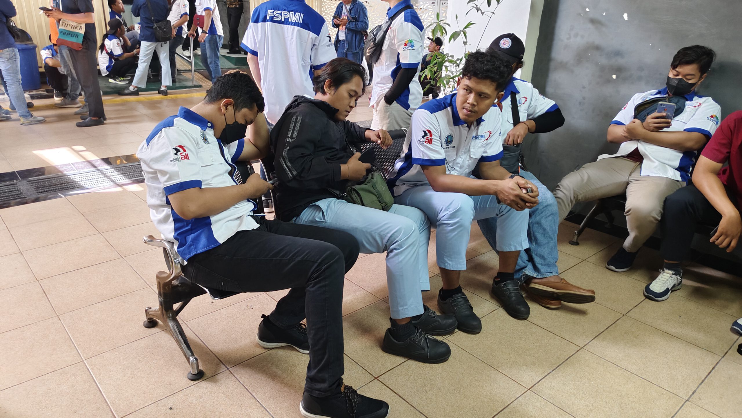 Dengan berjalannya waktu, baik massa FSPMI dan Tim Kuasa Hukum pun tetap menunggu hingga Sidang dimulai. (Khoirul Anam)