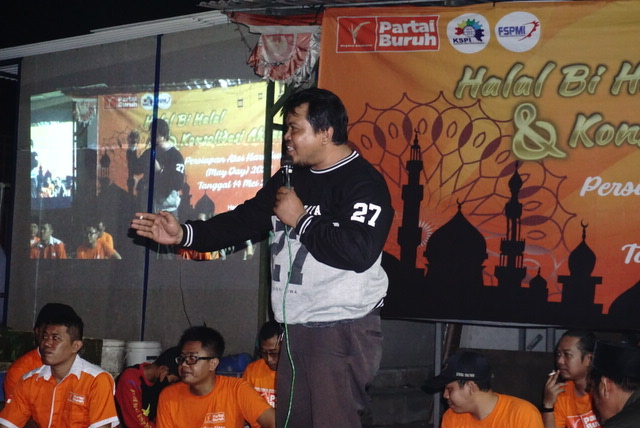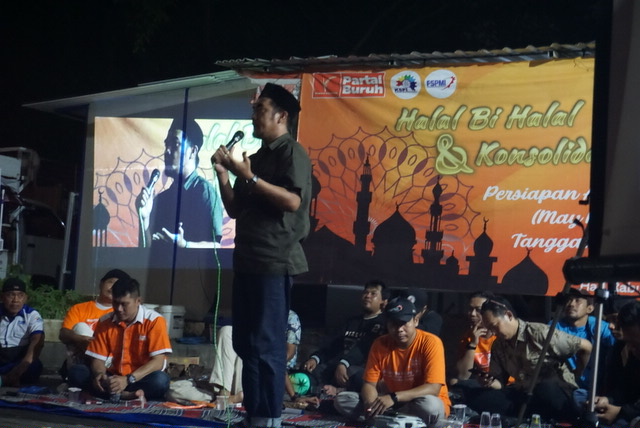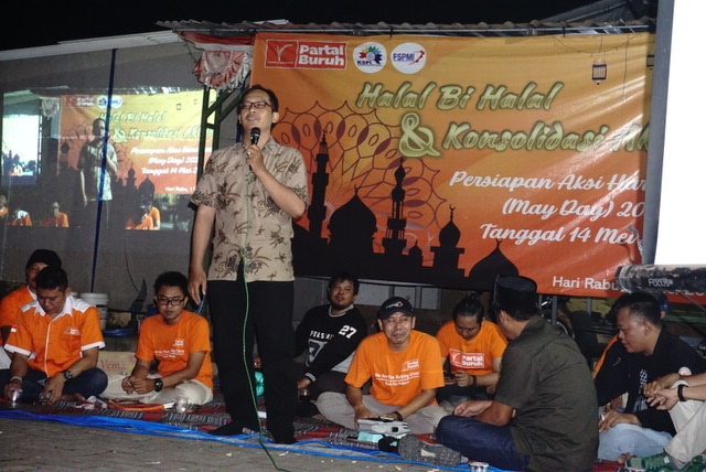 Dihadapan anggota Ketua KC FSPMI Kota Surabaya ,Doni Ariyanto yang melakukan Orasi paling akhir menekankan pentingnya aksi Hari Buruh ini dan menginstruksikan agar Allout untuk turun kejalan dengan menggunakan atribut Partai Buruh berwarna oranye.