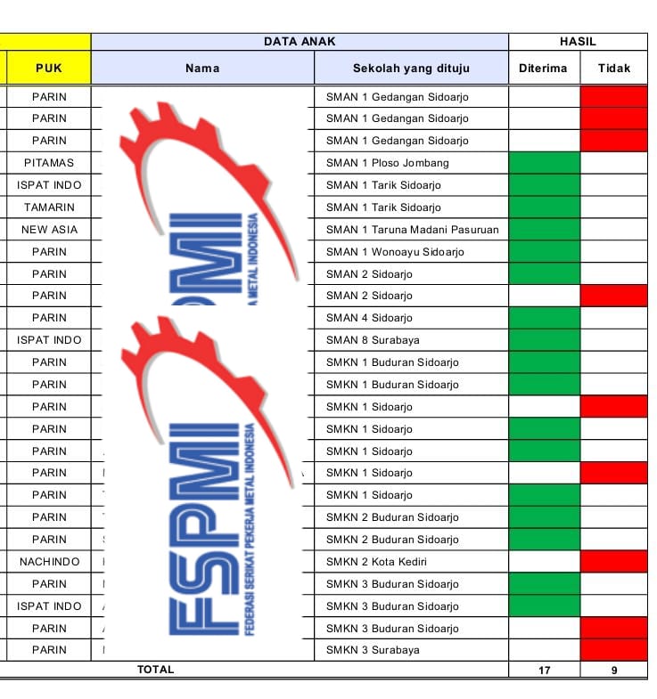Sidoarjo, KPonline – Selain melakukan tugas tugas Advokasi, dalam dua bulan terakhir PUK SPL FSPMI PT Pakarti Riken Indonesia (PUK Parin) juga tengah melakukan Pengawalan proses Pendaftaran Peserta Didik Baru (PPDB) Afirmasi jalur Anak Buruh bagi putra putri anggota yang mau melanjutkan jenjang pendidikan SMA dan sederajat.