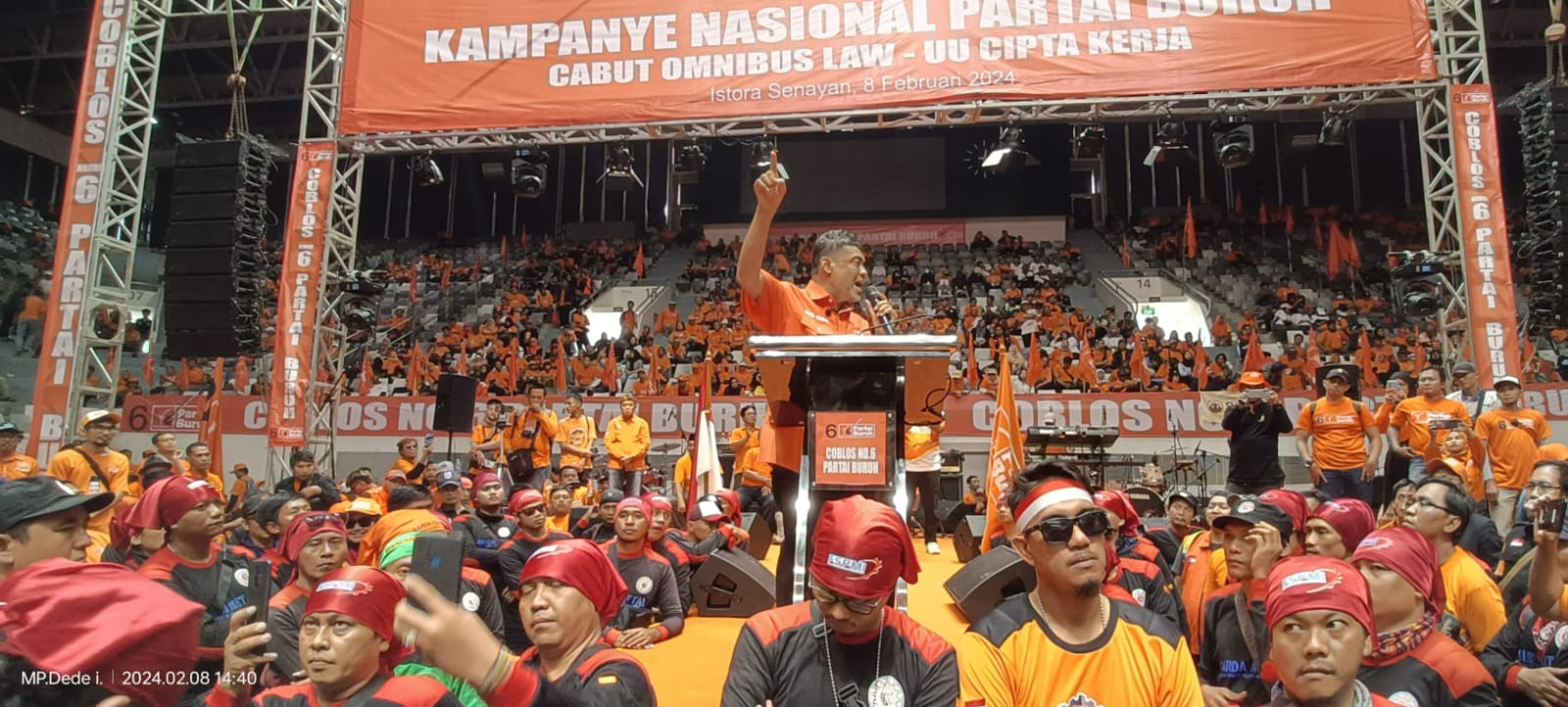 Hari ini kurang lebih 90.000 orang buruh memenuhi istora, menyambut euforia pesta demokrasi juga mendengarkan orasi politik visi misi apa yang akan partai buruh bawa jika menang dalam pemilu 2024 ini.
