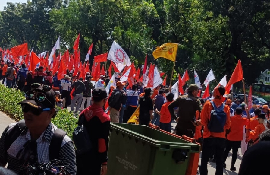 Jakarta , KPonline – Ribuan buruh tergabung dalam Partai buruh, serikat pekerja dan serikat petani yang berasal dari berbagai daerah seperti Jabodetabek, Serang, Cilegon, Karawang, Purwakarta, dan Bandung Barat padati depan Istana Negara menggelar aksi unjuk rasa damai Partai Buruh terkait menolak Isi Perppu No. 2 Tahun 2022. Sab’tu, (14/1/22)