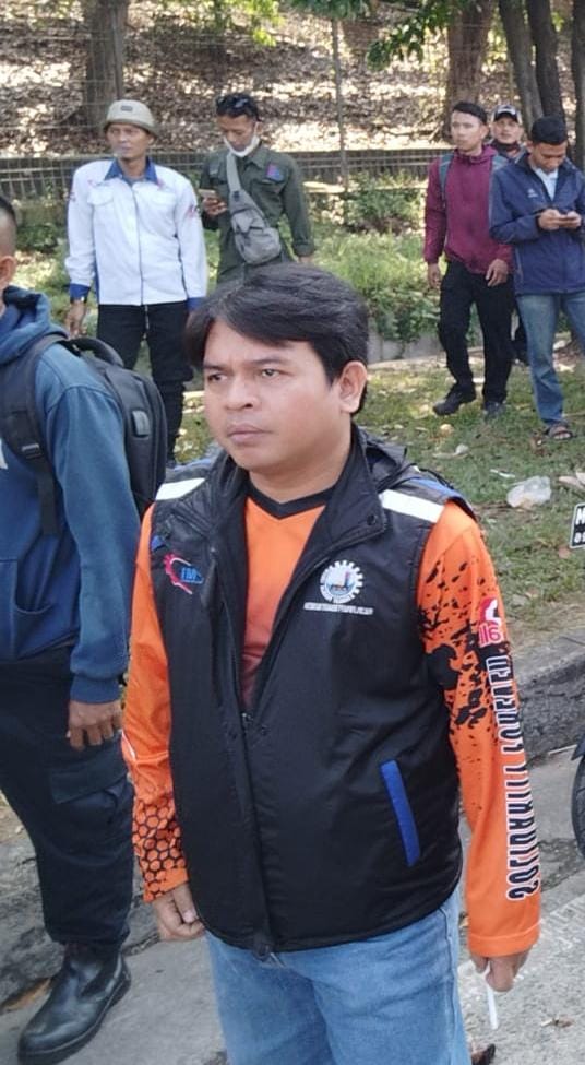 Hadir juga Ketua PUK SPL FSPMI PT. Bekaert Indonesia Iwan Setiawan dalam Aksi Solidaritas untuk PUK SPAI FSPMI PT. Santos Jaya Abadi II di tengah tengah masa aksi yang rencananya aksi tersebut akan berakhir sesuai dengan tertera dari Surat Instruksi selama satu Bulan.