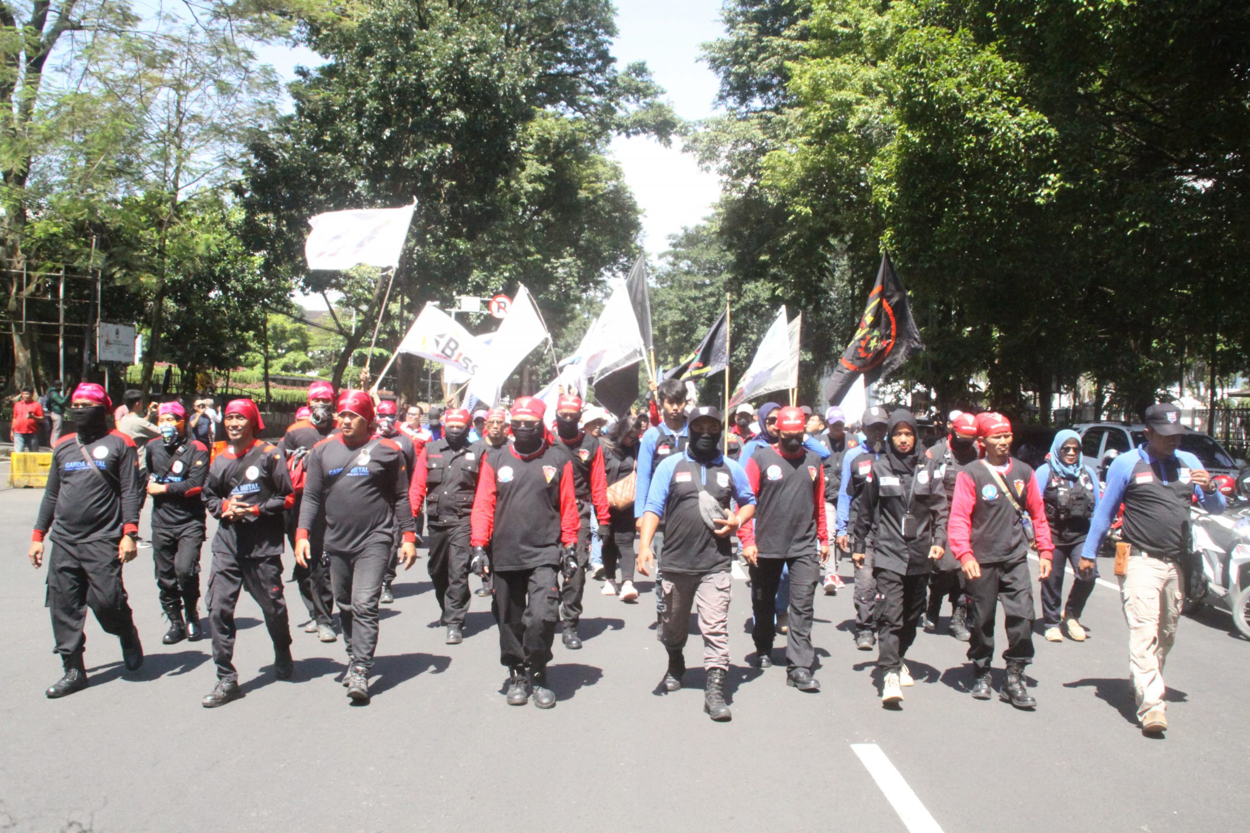 Terlihat Ratusan Pekerja atau Buruh yang tergabung dalam Aliansi Buruh Jawa barat seperti FSPMI, LEM SPSI, KEP SPSI, TSK SPSI, SPN, FBK Serbuk, PPMI, BISS (Buruh Industri Sepatu Sandal) dan Serikat Pekerja / serikat buruh lainnya.