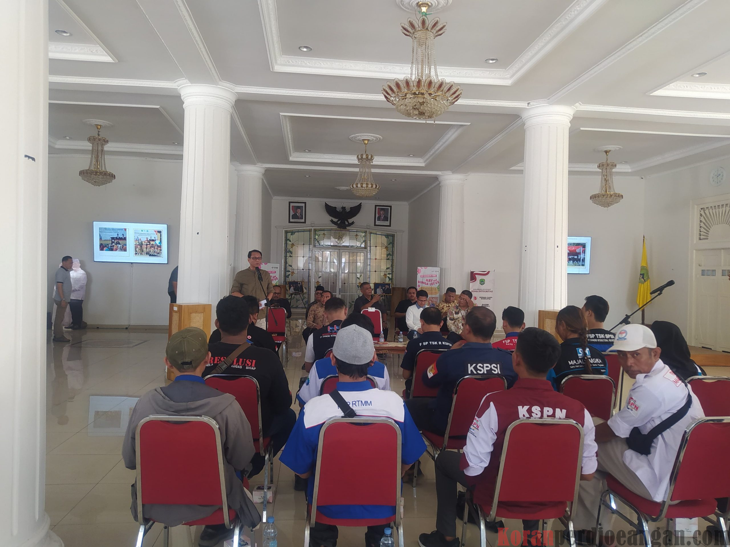 Majalengka, KPonline – Serikat Pekerja yang tergabung dalam Aliansi Buruh Majalengka (ABM) di antaranya FSPMI, SPN, PPMI, KSPSI R, TSK SPSI, FKSPN, RTMM SPSI melakukan audiensi dengan Pemerintah Daerah Kabupaten Majalengka, Apindo, dan BPS Majalengka pada Jumat, 8 November 2024 di Pendopo Bupati, Kabupaten Majalengka.
