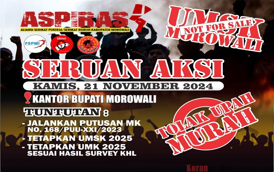 Informasi yang berhasil dihimpun koran perdjoeangan aksi aliansi serikat Pekerja/Serikat Buruh Kabupaten Morowali menuntut diantaranya :