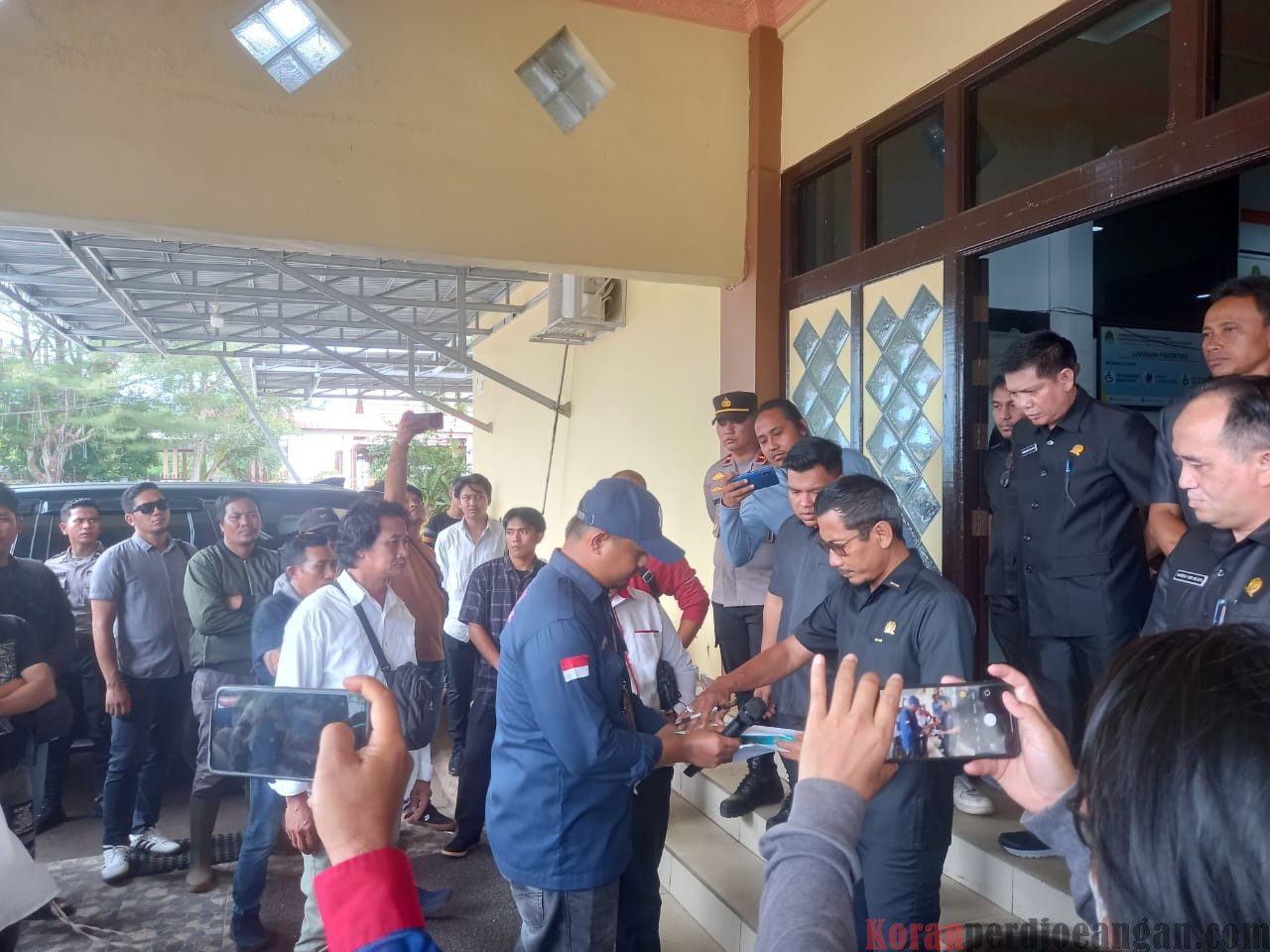 Setelah menunggu hampir 2 jam Ketua DPRD dan beberapa anggotanya menemui Aliansi Federasi – federasi Buruh Bersatu Ketapang didepan Kantor DPRD Ketapang oleh M. Sholeh selaku Ketua DPRD Kabupaten Ketapang.