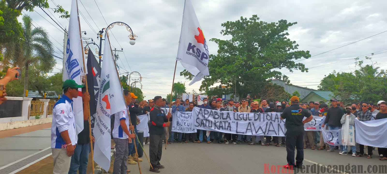 Ketapang, KPonline – Aliansi Serikat Buruh Ketapang Berserta KC FSPMI Ketapang geruduk Kantor DPRD dan Kantor Bupati Ketapang meminta agar Upah Sektoral Tambang diberlakukan. Jum’at (27/12/2024).