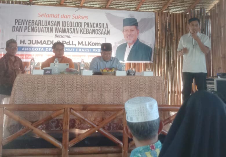 Medan,KPonline, – Anggota DPRD Provinsi Sumatera Utara H. Jumadi S.Pd.I , M.Ikom menggelar sosialisasi penyebarluasan ideologi Pancasila dan Penguatan Wawasan Kebangsaan, pada Sabtu sore (19/07/2025).