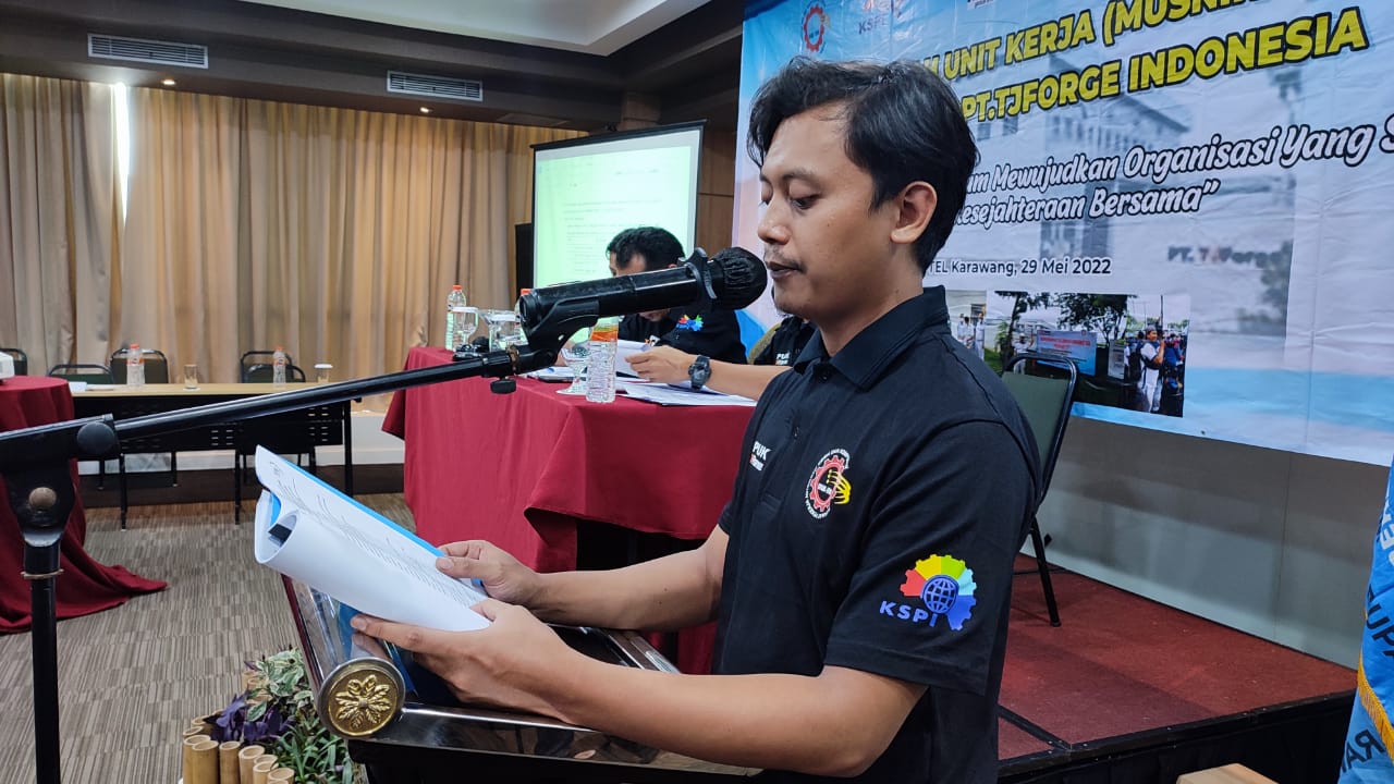 Musnik II PUK SPAMK-FSPMI PT. TJ Forge Indonesia yang diadakan di Hotel Brits, Minggu (29/05/2022), mengingat masa bakti pengurus periode 2019-2022 telah berakhir sesuai AD & ART FSPMI maupun AD & ART PC SPAMK-FSPMI Kabupaten Karawang.