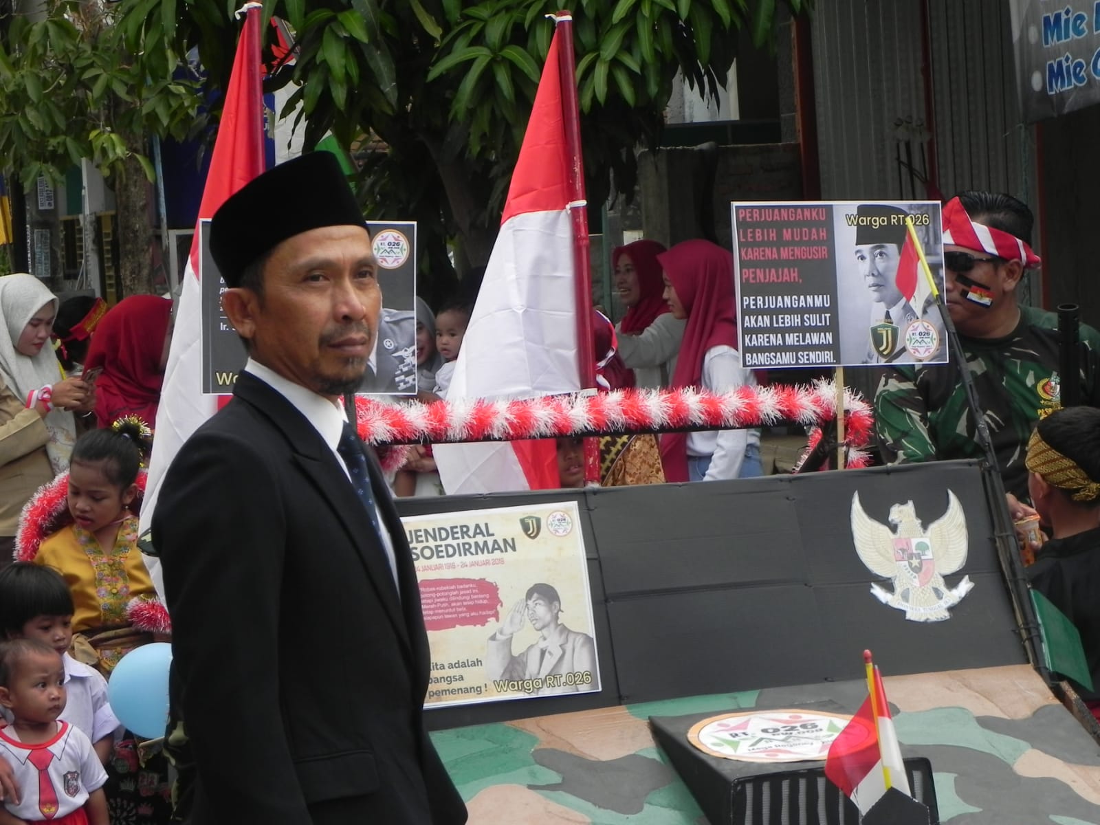 Seperti apa yang dilakukan oleh warga RT 26 dalam berpatisipasi memeriahkan acara karnaval dengan riang gembira dan tematik perjuangan.