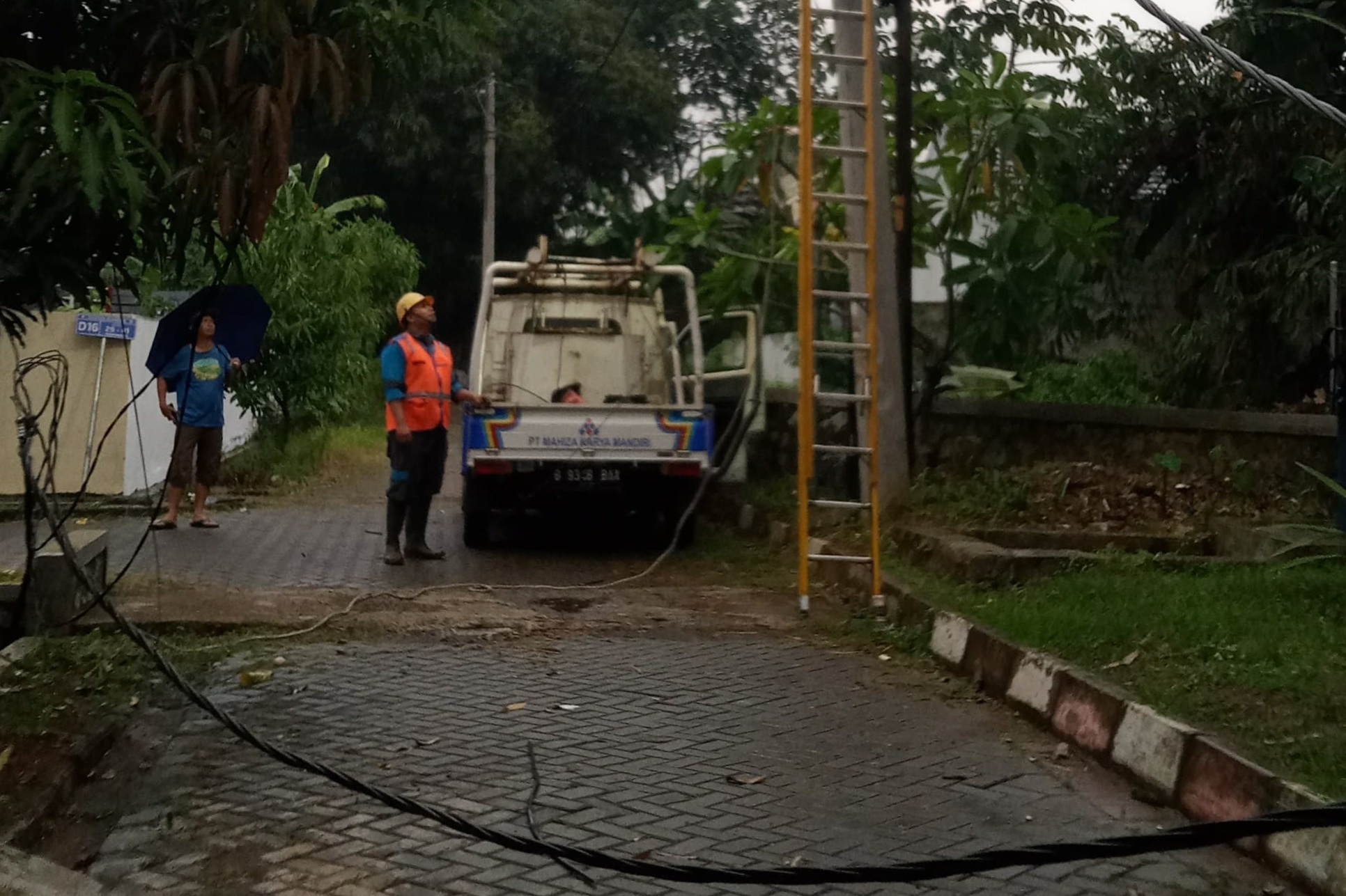 Bahayakan Warga Mustika Jaya, Kabel PLN Jatuh Dihantam Angin Puting Beliung
