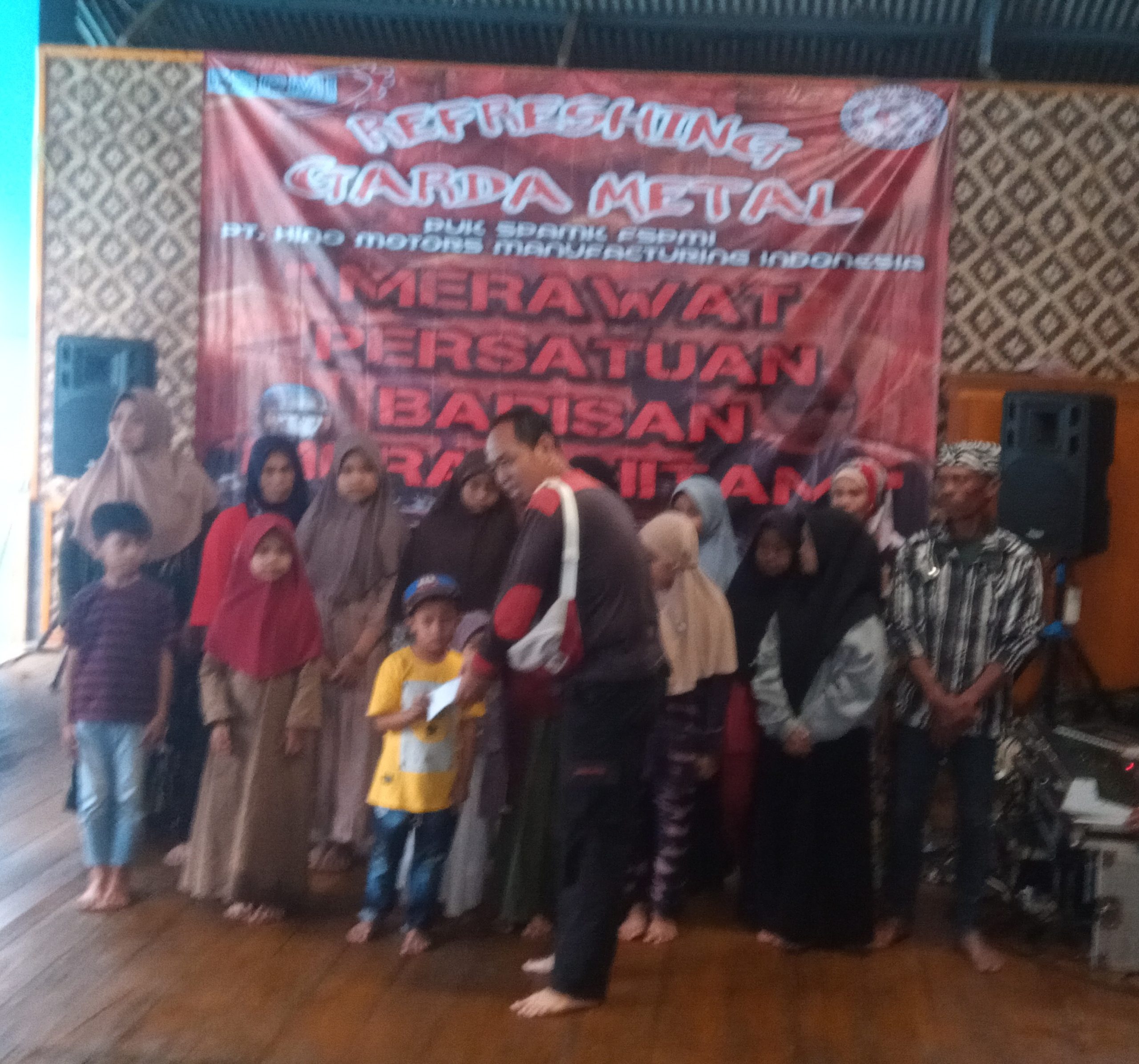 “Alhamdulillah, Garda Metal (PUK SPAMK-FSPMI PT. Hino Motor’s Manufacturing Indonesia) bisa memberikan santunan anak yatim dan bantuan dana untuk renovasi Musholla di sekitaran tempat kegiatan refreshing Garda Metal kali ini,” kata Erik Santoso.