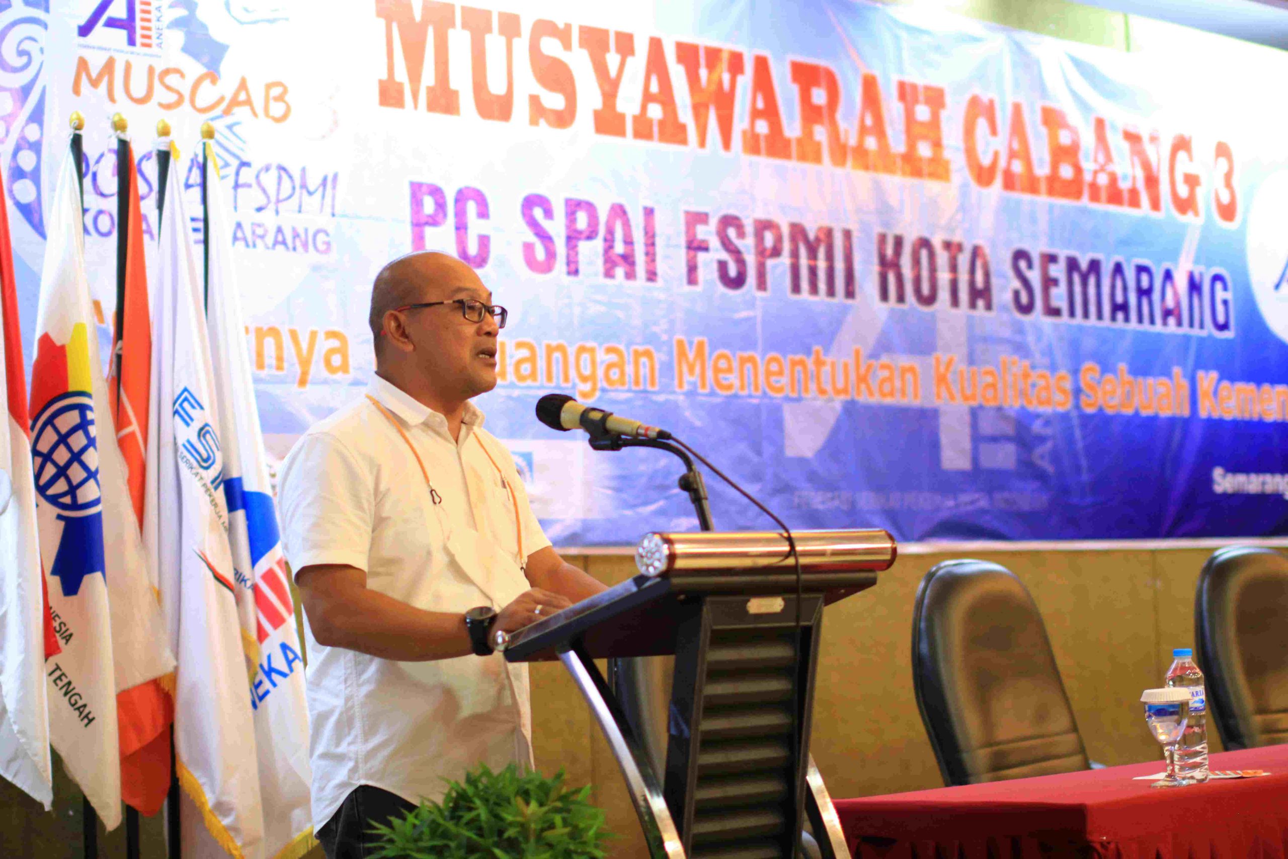 “MUSCAB kali ini adalah sarana kita untuk mengevaluasi kinerja dari kepengurusan Pimpinan Cabang SPAI Kota Semarang 5 tahun kebelakang dan sebagai cara bagaimana kita menentukan program kerja kita selama 5 tahun juga ke depan. Maka pada kesempatan ini saya berharap rekan-rekan PUK SPAI Kota Semarang dapat menentukan program-program kerja apa saja yang menjadi prioritas,” ucapnya memulai sambutan.