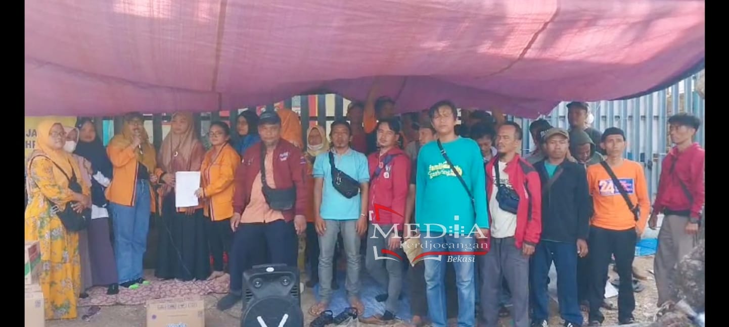Bekasi, KPonline – Anggota PUK SPAI FSPMI PT. Dinar Makmur Cikarang (DMC) yang jadi korban PHK masih terus berjuang untuk mendapatkan keadilan. Mereka mendirikan tenda perjuangan di depan perusahaan sebagai simbol perjuangan.