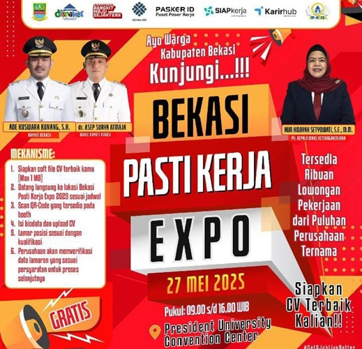 Untuk lokasi kegiatan Bekasi Pasti Kerja Expo 2025 dapat dipantau melalui akun Instagram resmi Humas Pemkab Bekasi @bekasi_kab, atau Dinas Ketenagakerjaan Kab. Bekasi @bekasikab.ketenagakerjaan. (Yanto).