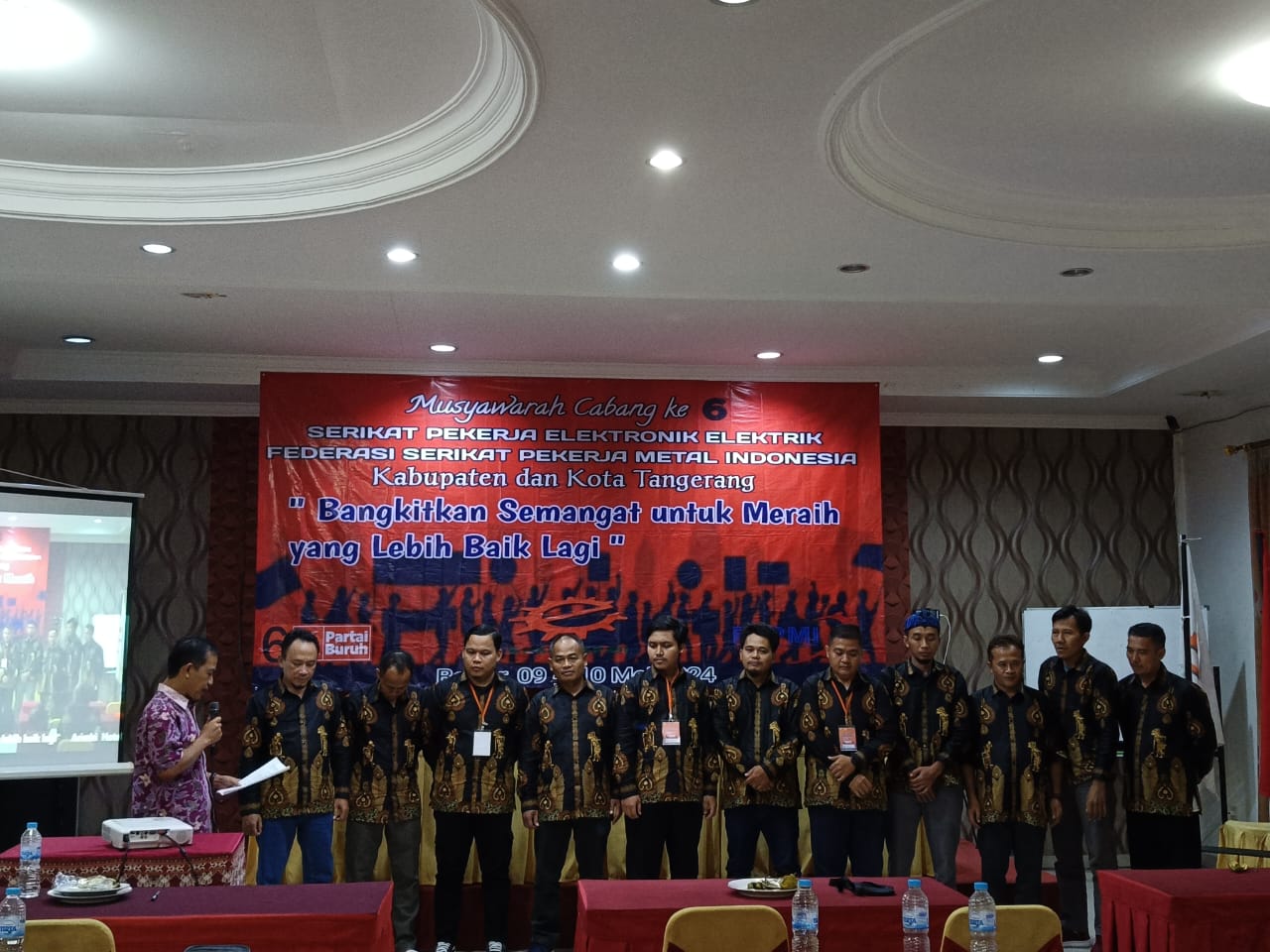 Tangerang, KPonline – Setelah seharian menggelar Muscab 6 PC SPEE FSPMI TANGERANG akhirnya mencapai kata mufakat. Dalam pelaksanaan Musyawarah Cabang SPEE FSPMI Kabupaten/Kota Tangerang dengan Cara Aklamasi dan Kuntadi sebagai Ketua lama periode 2019 – 2024 akan melanjutkan kepemimpinanya masa bakti 2024 – 2029. Kamis (9/5/24).