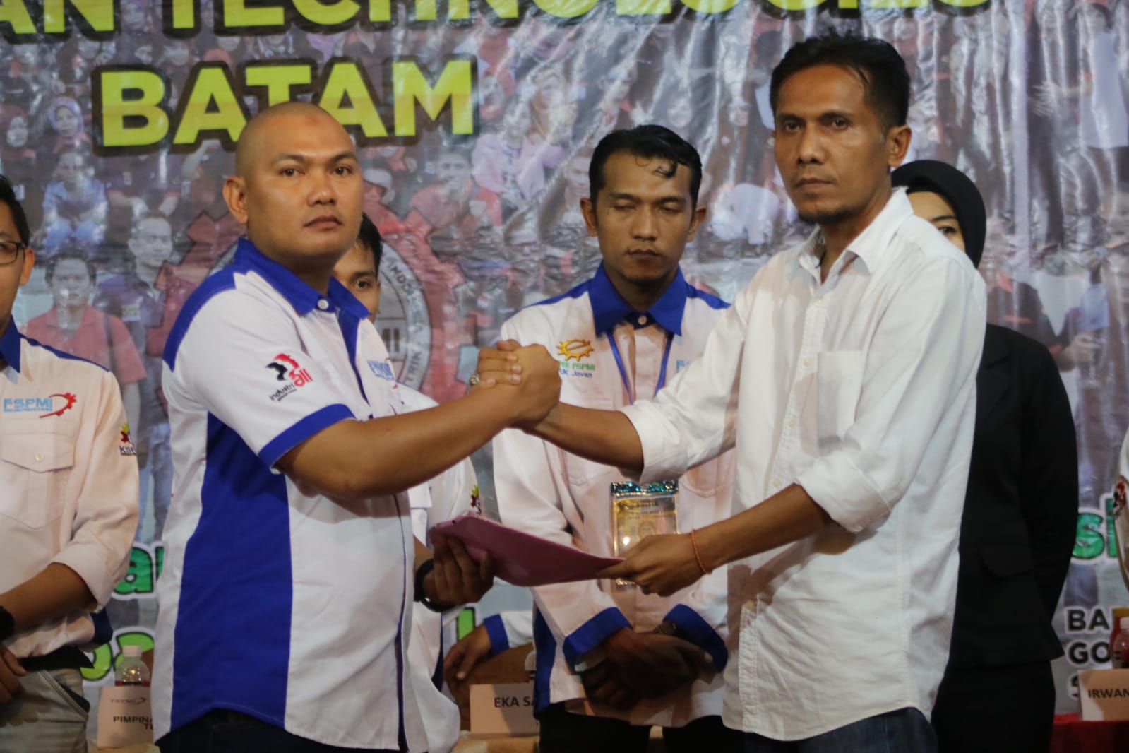Ketua PC SPEE FSPMI Batam, Masrial Sutan Makmur berpesan kepada seluruh anggoat PUK Jovan Technologies Batam agar terus mensupport seluruh pengurus PUK terpilih.