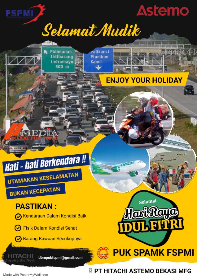 Sementara itu sekretaris PUK Hitachi Astemo Bekasi Manufacturing Tudiono (Fresa) yang juga merangkap sebagai Bidang Organisasi PC SPAMK FSPMI Bekasi sekaligus Sekretaris Daerah Garda Metal Bekasi menghimbau kepada anggota serikat pekerja yang akan melaksanakan mudik lebaran untuk senantiasa berhati-hati dan menjaga keselamatan di jalan.