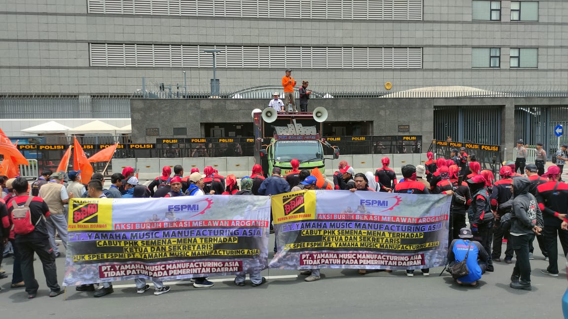 Saat ini Kamis (13/3/2025), selain aksi solidaritas di depan PT. YMMA, Kawasan MM2100, Bekasi, buruh FSPMI juga mendatangi Kedubes Jepang di Jalan M.H. Thamrin, Jakarta Pusat.