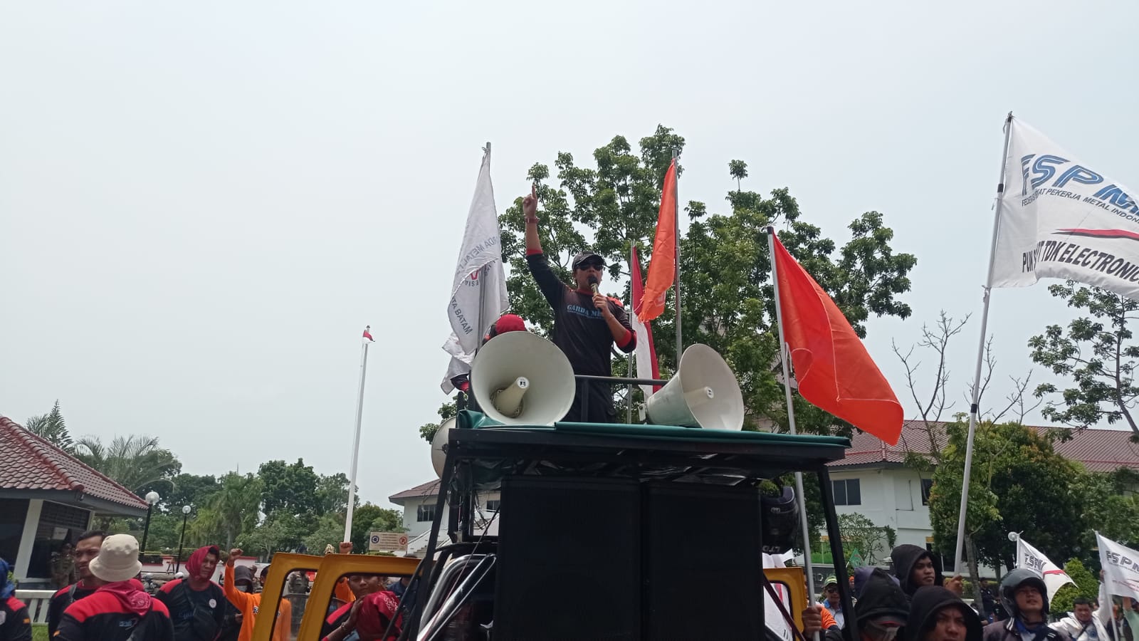 Buruh Batam yang terdiri dari pekerja dari berbagai sektor ini terlihat telah