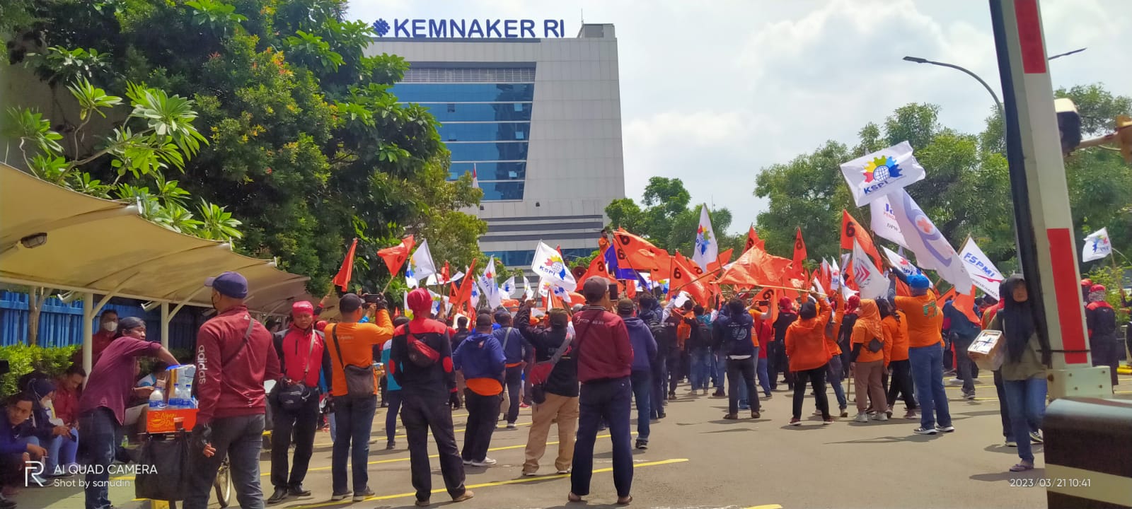 Jakarta, KPonline – Pada Selasa, 21 Maret 2023, Partai Buruh melakukan aksi unjuk rasa di Kantor Kementerian Ketenagakerjaan RI, Jakarta.