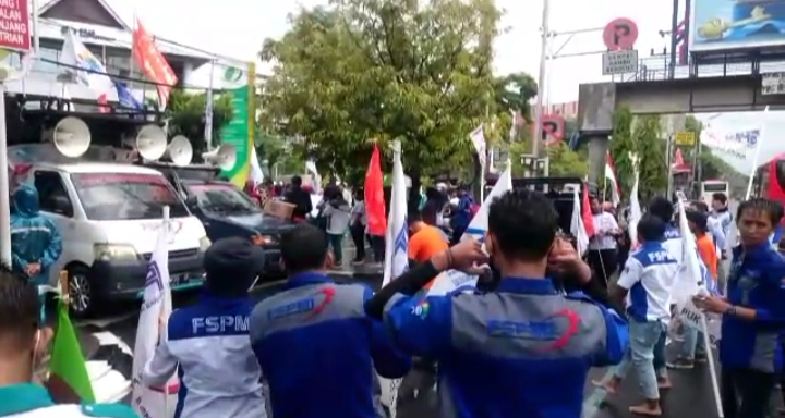 Semarang, KPonline – Dibuat geram oleh kebijakan Peraturan Menteri Ketenagakerjaan (Permenaker) Nomor 2 Tahun 2022, ratusan buruh yang tergabung dalam afiliasi Konfederasi Serikat Pekerja Indonesia (KSPI) menyampaikan aspirasinya dengan menggelar aksi unjuk rasa di depan Kantor BPJS Ketenagakerjaan Wilayah Jawa Tengah dan DIY, Rabu (23/02/2022).
