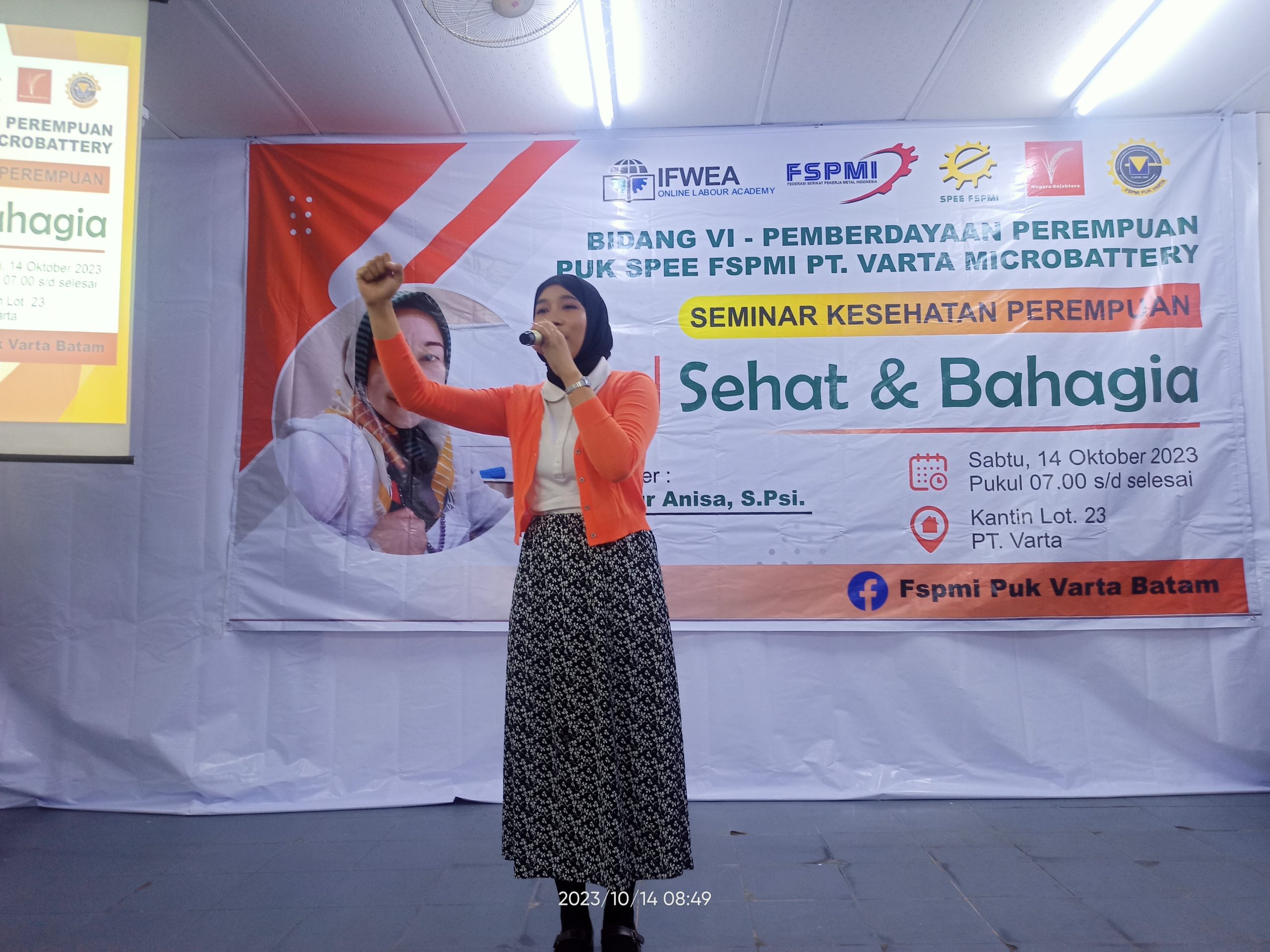 Batam,KPonline -Hari ini Sabtu ( 14/10/2023) berlangsung kegiatan Seminar Kesehatan Perempuan Sehat dan Bahagia Bersama PUK SPEE FSPMI PT.Varta Microbattery Batam.