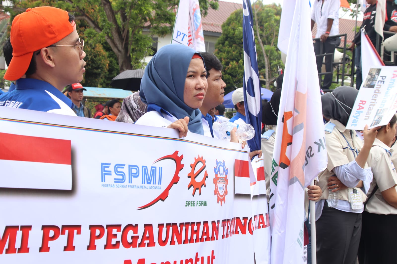 Diwarnai hujan lebat, buruh-buruh yang menolak PP Tapera ini masih bertahan menunggu perwakilan dari mereka yang menemui Walikota Batam.