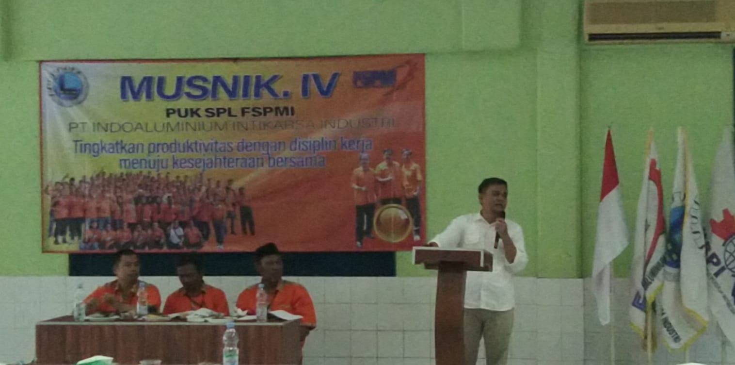 Musnik IV PUK SPL FSPMI PT. Indoalumunium Intikarsa Industri mengangkat tema ‘Tingkatkan Peoduktivitas Dengan Disiplin Kerja Menuju Kesejahteraan Bersama’.