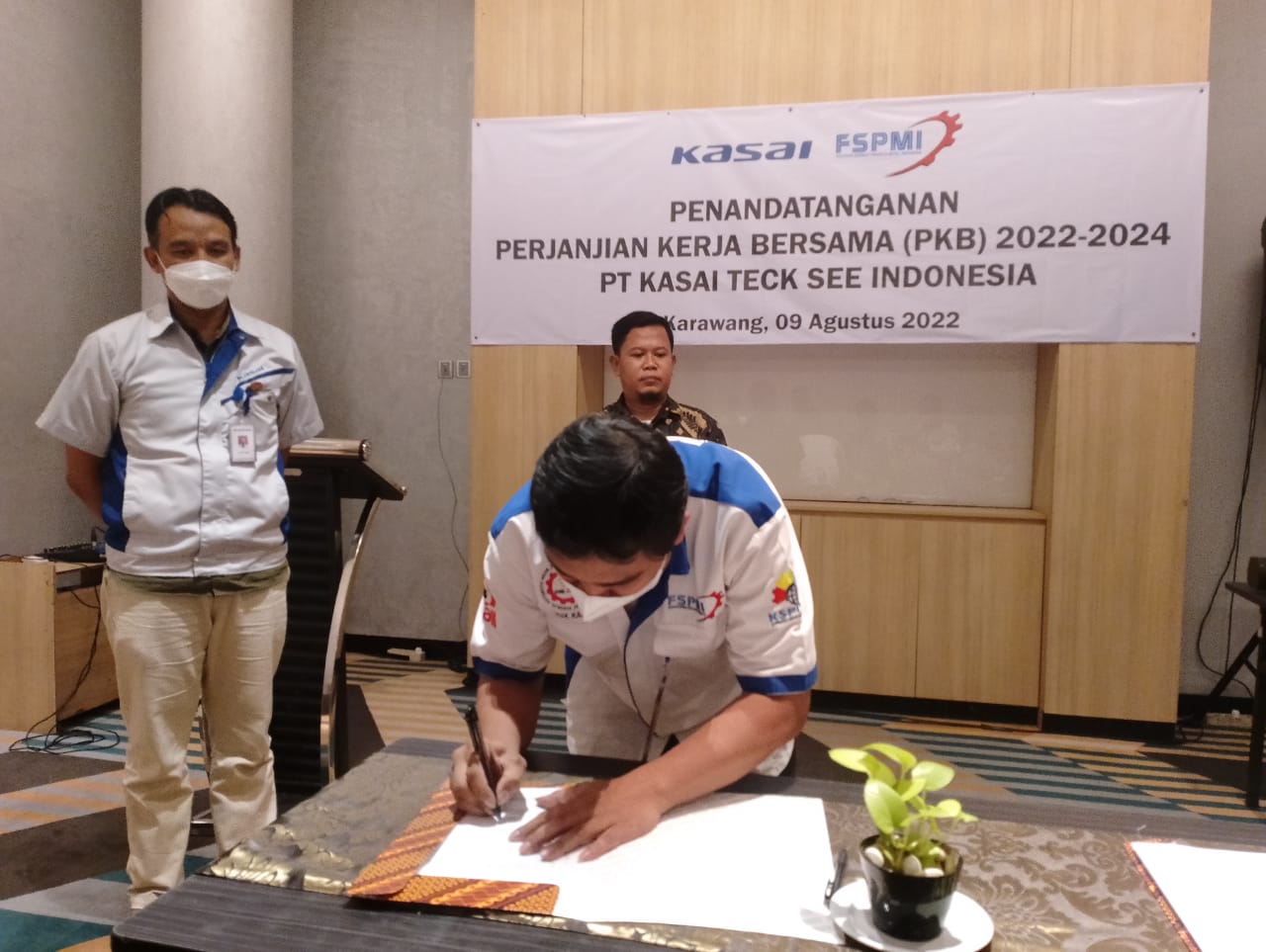 Karawang, KPonline – Setelah selesainya perundingan Perjanjian Kerja Bersama (PKB) periode 2022 – 2024 PT. Kasai Teck See Indonesia, pada siang ini Selasa, (09/08/2022) dilaksanakan ceremony penandatanganan Perjanjian Kerja Bersama (PKB) periode 2022 – 2024 di Novotel Hotel Karawang.