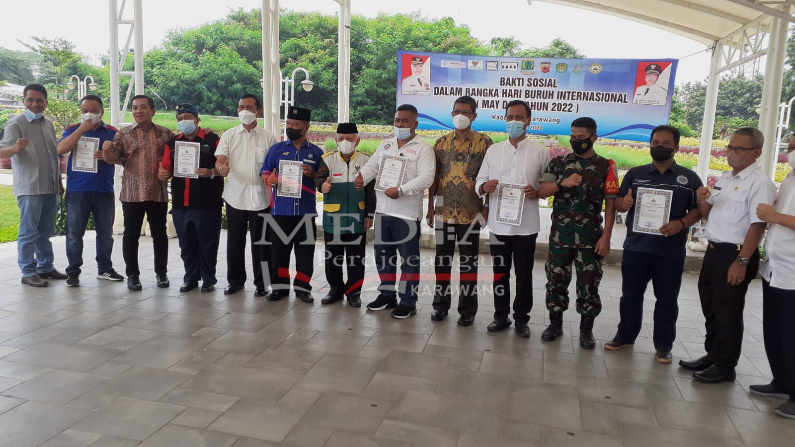 Penyerahan secara simbolis 1200 paket sembako pada peringatan May Day 2022 yang diselenggarakan Pemerintah Daerah Kabupaten Karawang, Disnakertrans Kabupaten Karawang, Apindo Karawang, Badan Zakat Nasional, Baitul Maalku pada hari Rabu (27/4) ini diterima langsung oleh Plt Disnakertrans Kabupaten dan Pemerintah Kabupaten Karawang yang kemudian di salurkan kepada anak anak yatim piatu dan Serikat Pekerja atau Serikat Buruh yang tergabung dalam Koalisi Buruh Pangkal Perjuangan (KBPP).