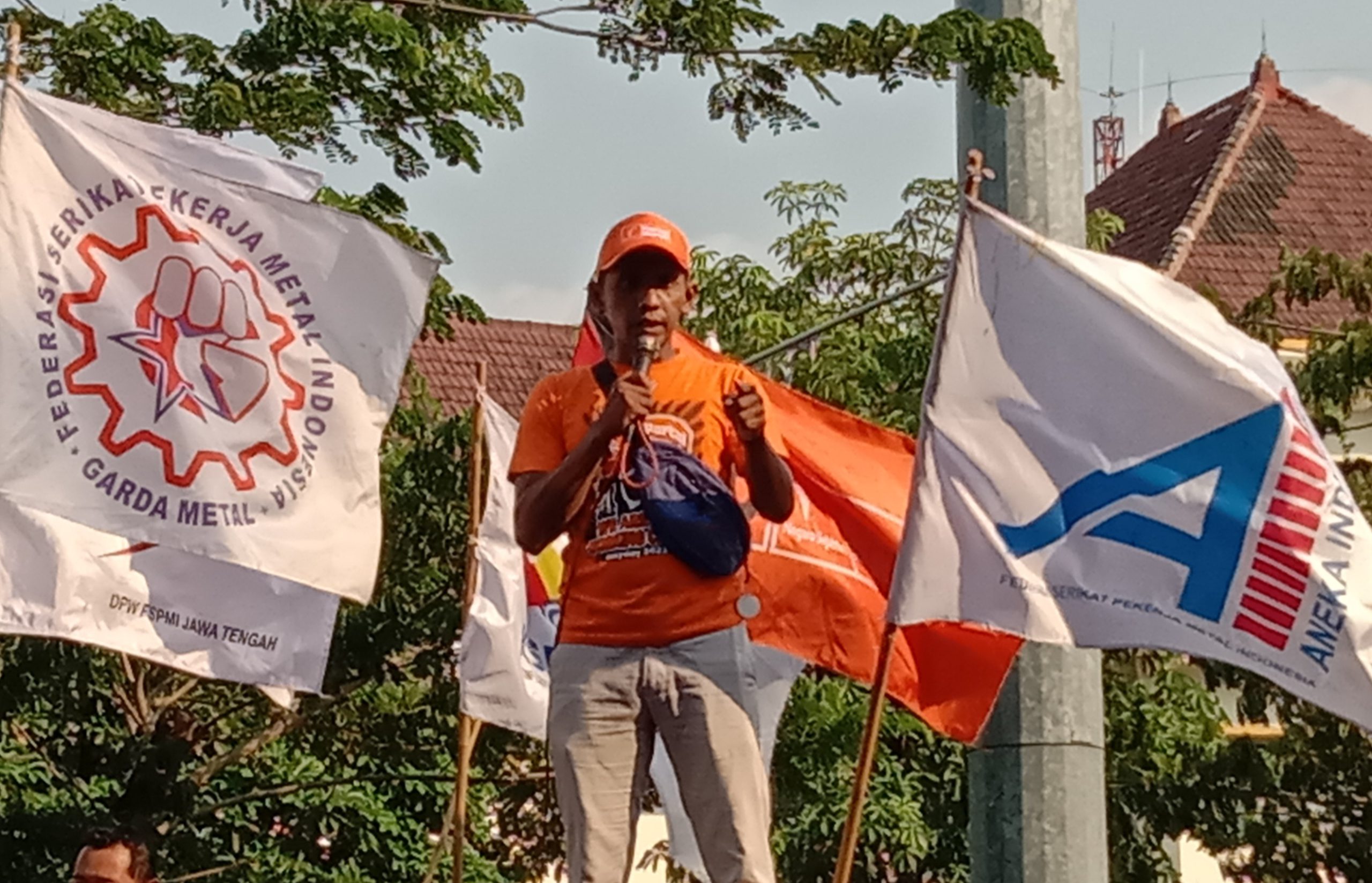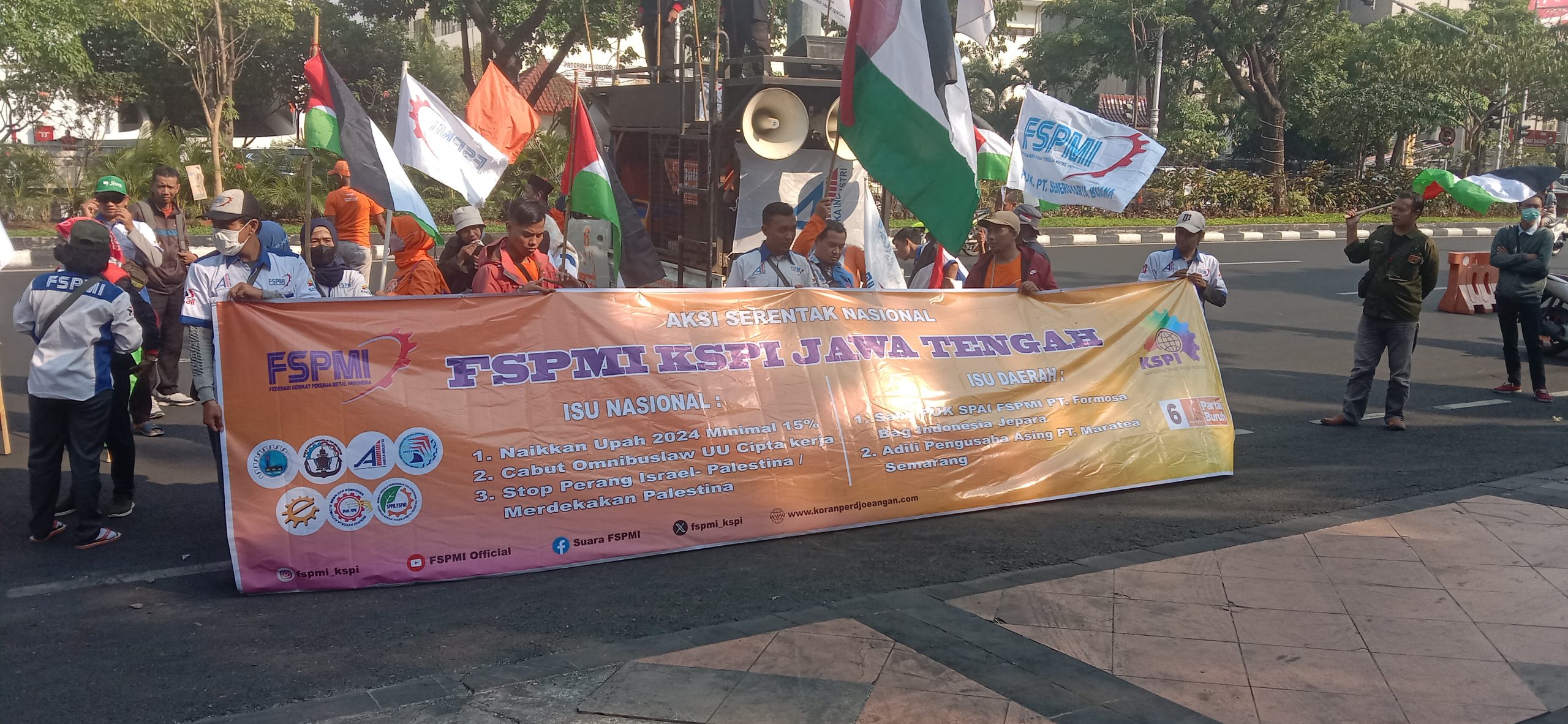 Luqmanul Hakim yang juga merupakan Sekretaris DPW FSPMI KSPI Jawa Tengah ini juga menyampaikan tuntutan keduanya yaitu meminta pemerintah untuk menghentikan Perang Israel – Palestina.