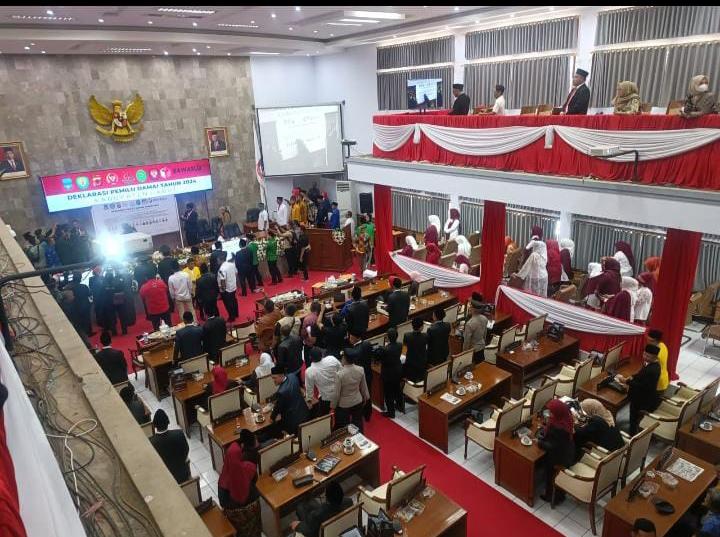 Garut, KPonline – KPUD Garut mengadakan Deklarasi Pemilu Damai 2024 yang bertempat di Gedung DPRD pada hari ini tanggal 16 Agustus 2024.