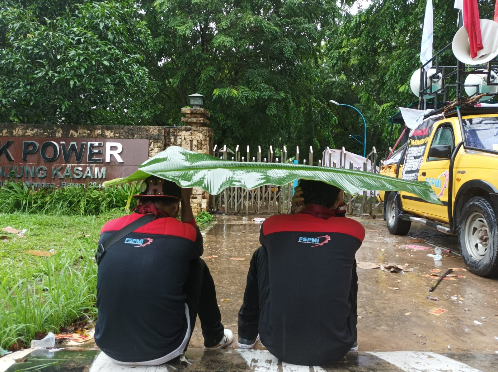 Batam, KPonline – Ratusan buruh yang tergabung dalam Federasi Serikat Pekerja Metal Indonesia (FSPMI) kota Batam masih bertahan di depan PT. CHD Power Plant Operation Indonesia Batam Branch meskipun diguyur hujan. Selasa, (21/06/2022).