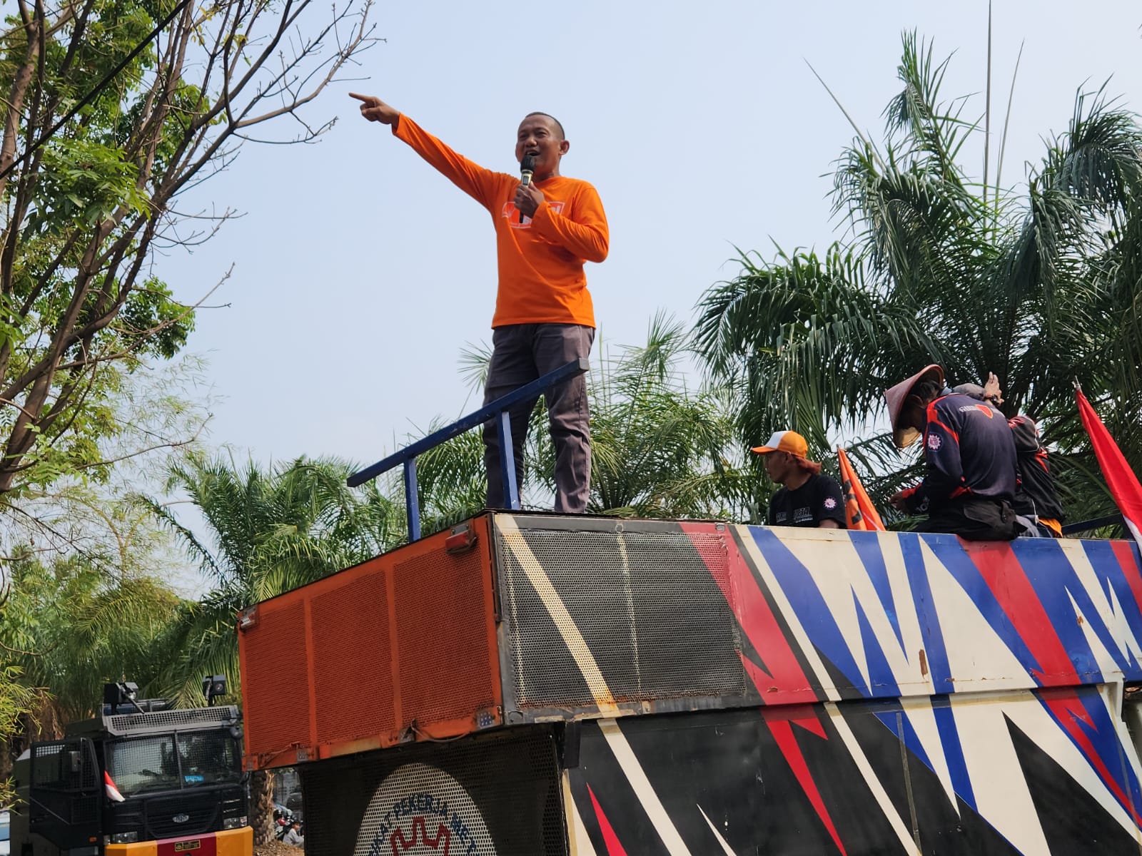 “Akan ada tuntutan tambahan selain kedua tuntutan aksi tersebut yaitu angkat semua pekerja magang dan harian menjadi pekerja tetap,” ujar Sarino dari atas mobil komando.