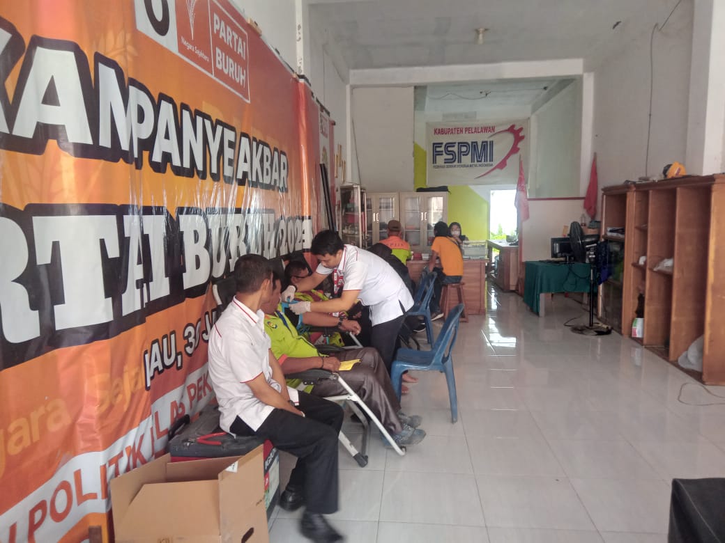 Selain melakukan aksi damai juga menyelenggarakan program donor darah bersama Palang Merah Indonesia (PMI) Kabupaten Pelalawan bertempat di Kantor Exco Partai Buruh Kabupaten Pelalawan yang berada di Jalan Masjid Raya No.16, Pangkalan Kerinci Kota, Kecamatan Pangkalan Kerinci Kabupaten Pelalawan.
