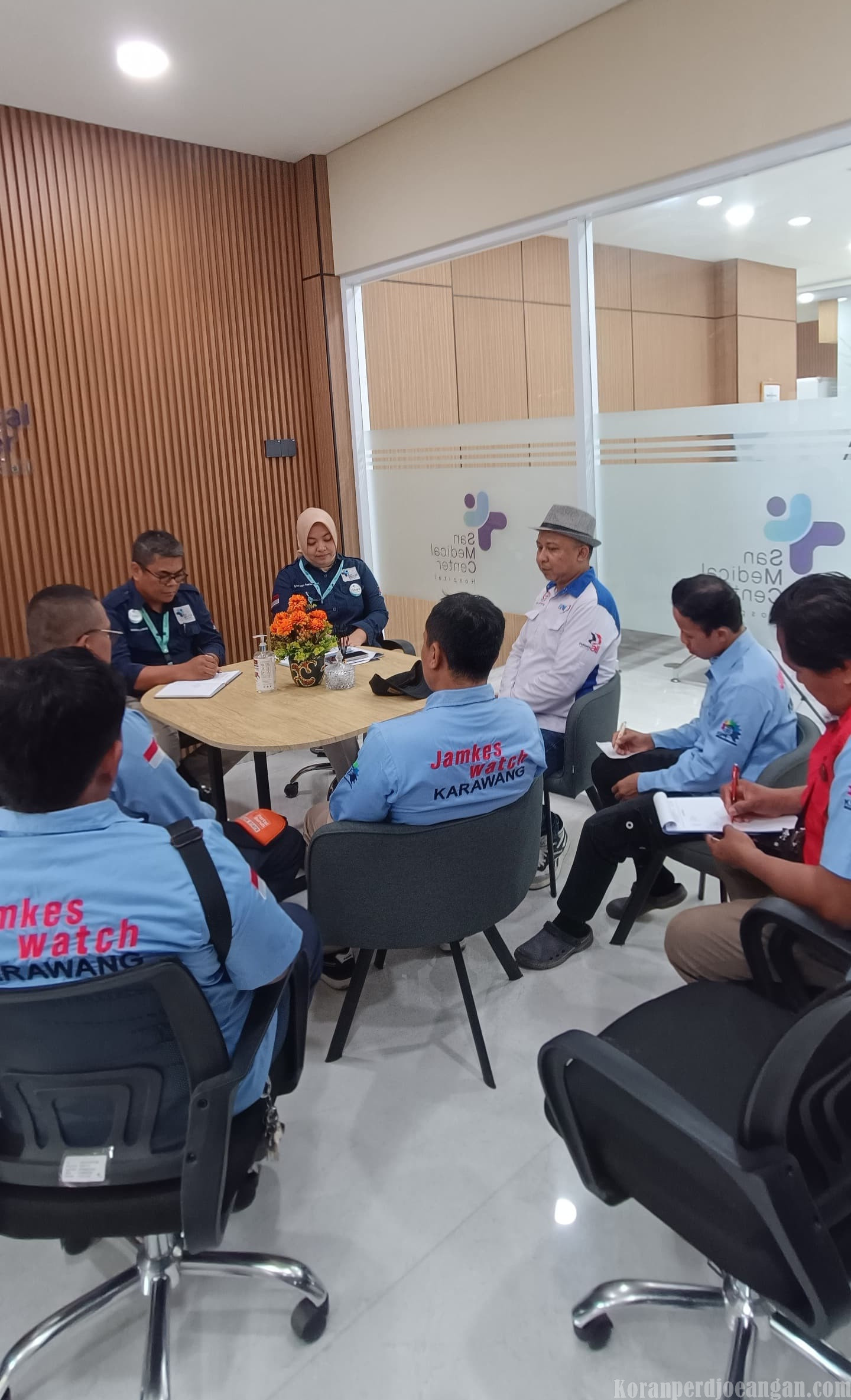 Pertemuan ini dihadiri 9 orang yang terdiri dari 2 orang perwakilan Manajemen Rumah Sakit (Wakil Direktur, Mardianto, AMK, S.E., dan Marketing, Sylvana), sedangkan dari perwakilan Jamkeswatch 7 orang (Syehudin, Jajang, Fazry, Rino, Endi, Anton, dan Mugi), Diskusi ringan berjalan lancar dan komunikasi berjalan sesuai harapan.