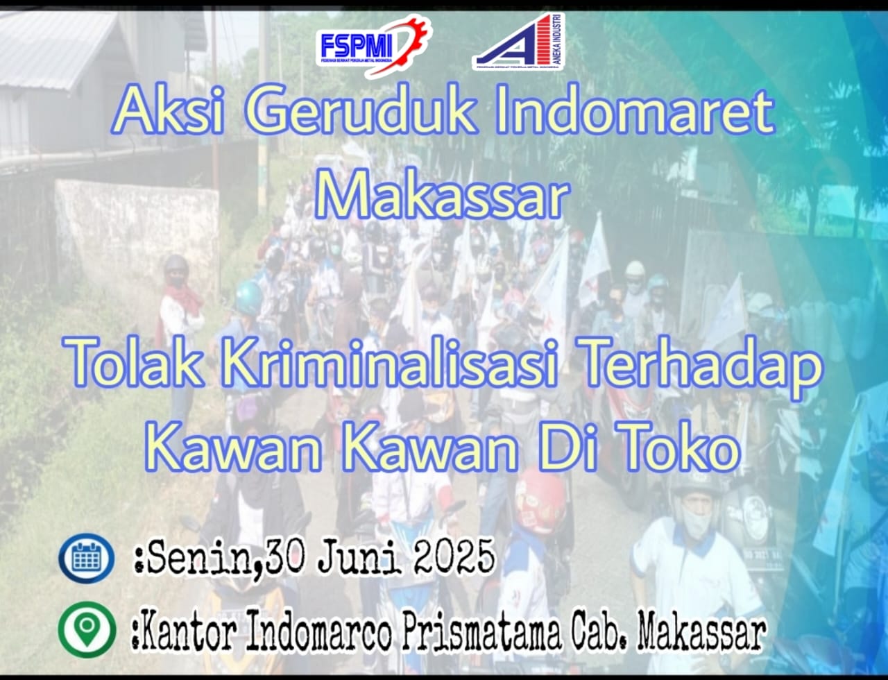 Makassar, KPonline – Dugaan kriminalisasi Manajemen terhadap anggota terjadi lagi terhadap Burhanuddin, crew store yang tergabung dalam Pimpinan Unit Kerja (PUK) Serikat Pekerja Aneka Industri (SPAI) Federasi Serikat Pekerja Metal Indonesia (FSPMI) Indomarco Prismatama (Indomaret) Pekerja Wilayah Sulawesi Barat, pada Selasa (24/06/2025).