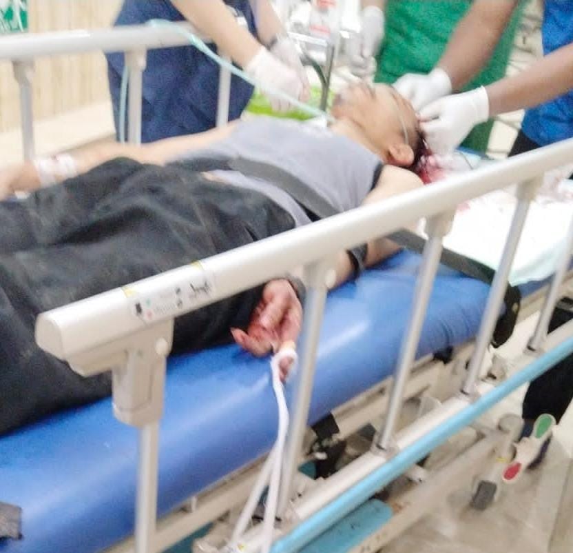 Kondisi korban mengalami pendarahan hebat dikepala dan terjadi retak pada bagian tengkorak belakang sehingga perlu penanganan intensif dan dirujuk Ke RSUD Karawang, Anggota Kami yang bersama korban membawa korban dengan kendaraan operasional Babinsa TNI AD dalam perjalanan korban mengalami pendarahan sekitar kepala tanpa henti, muntah dan kejang kejang.