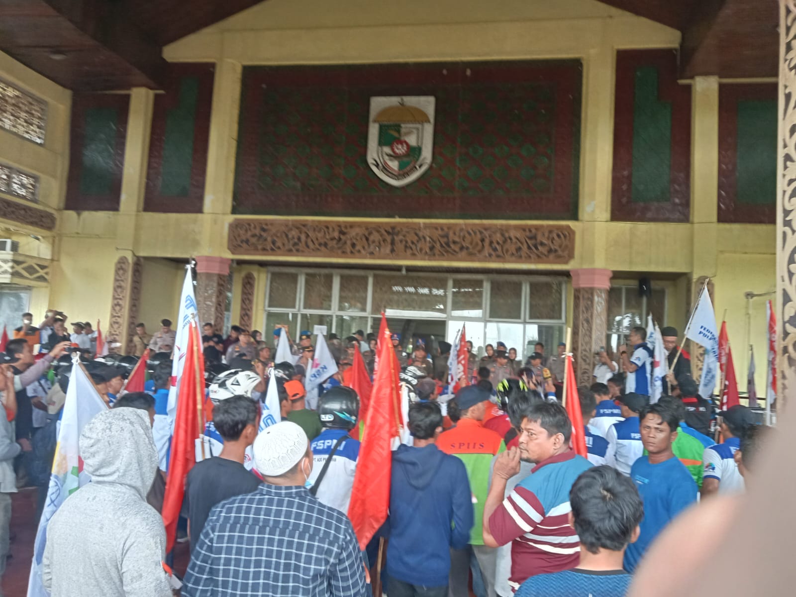 Pelalawan,KPonline – Ratusan buruh yang tergabung dalam Aliansi Buruh Pelalawan Bersatu melakukan aksi damai menuntut kenaikan Upah Minimun Kabupaten/Kota ( UMK ) tahun 2024 sebesar 15%,yang mana aksi damai tersebut dilakukan di depan kantor bupati kabupaten Pelalawan Riau,pada Selasa 14 November 2023.