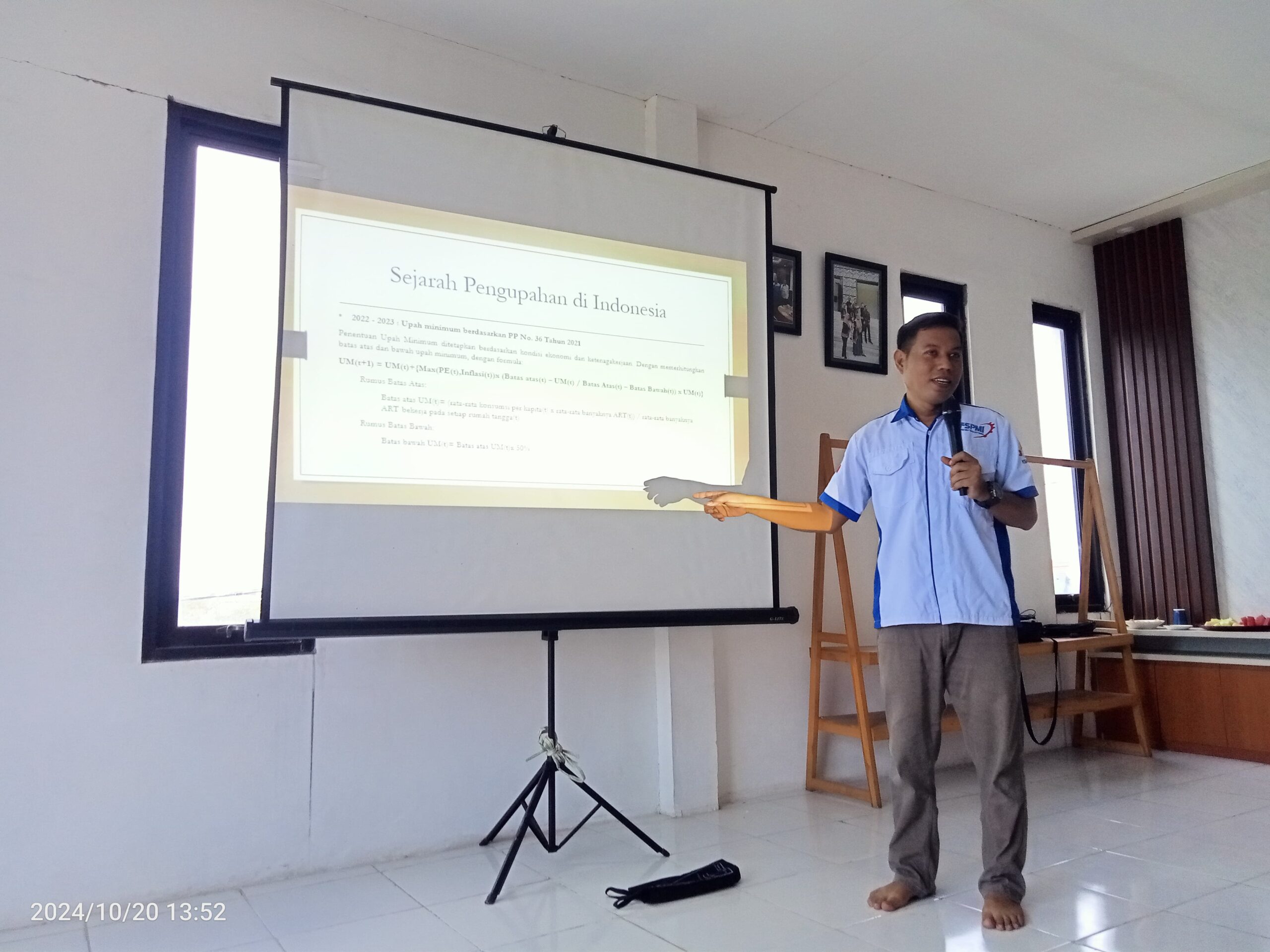 Materi yang disampaikan meliputi berbagai aspek penting terkait pengupahan. Pertama, peserta diajak memahami pengertian upah secara mendalam serta sejarah pengupahan di Indonesia, yang menjadi konteks penting dalam diskusi ini. Selanjutnya, Fery Andrianto memaparkan konsep Konfederasi Serikat Pekerja Indonesia (KSPI) dalam penetapan upah minimum untuk tahun 2025. Materi ini sangat relevan, mengingat adanya perubahan kebijakan yang perlu dipahami oleh anggota.