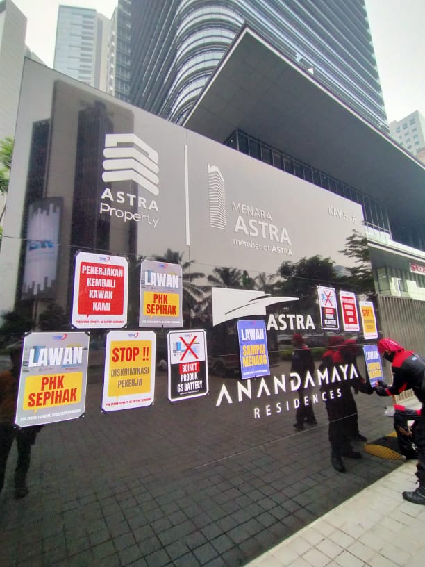 Jakarta, KPonline – Kamis siang ini (31/3) menjadi kali kedua Federasi Serikat Pekerja Metal Indonesia (FSPMI) menggelar aksi demonstrasi di depan Menara Astra, jl. Jenderal Soedirman, Jakarta untuk anggotanya PT. GS Battery Semarang yang terdampak PHK sepihak (31/3).