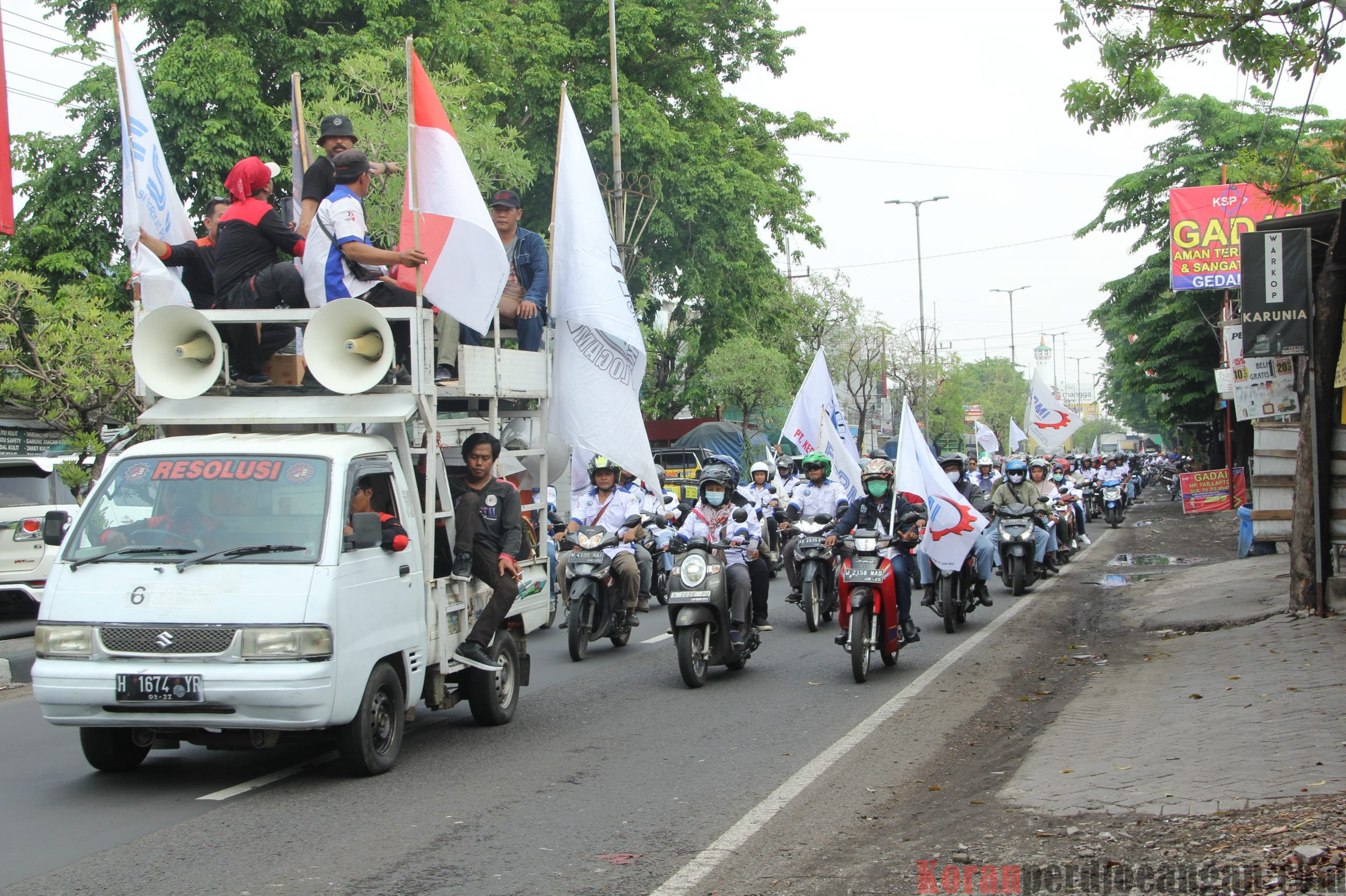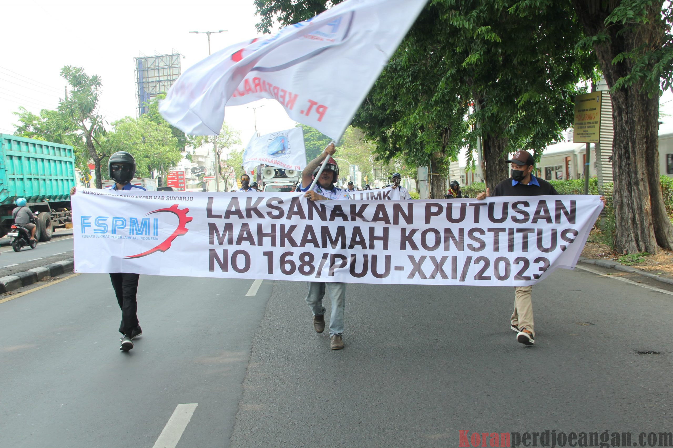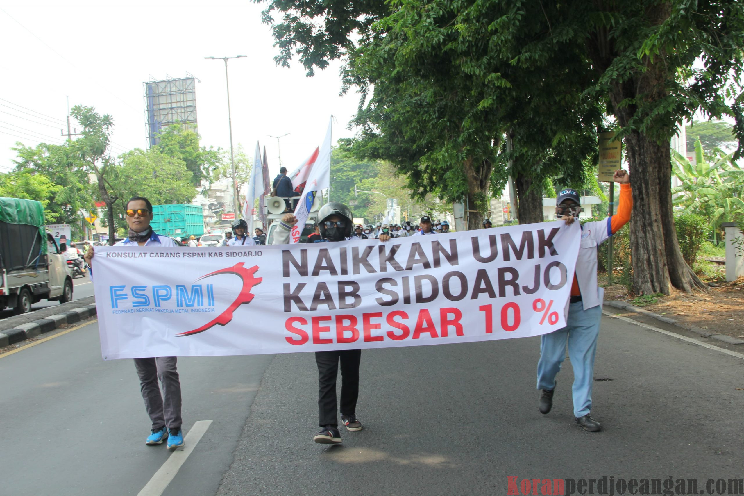 Audensi ini juga didukung massa FSPMI dengan aksi longmarch dari Gedangan hingga Sidoarjo .