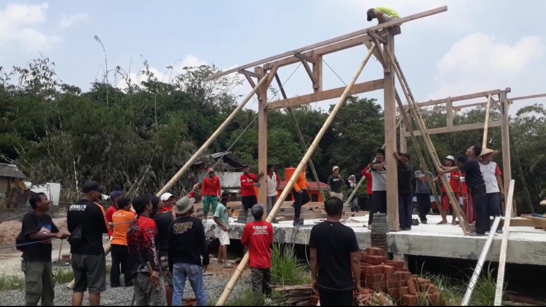 Turut hadir di lokasi dalam kegiatan ini puluhan anggota FSPMI dan Garda Metal Tangerang. Mereka bahu membahu mulai dari menurunkan kayu, bambu, pemasangan batu hingga mengaduk semen.
