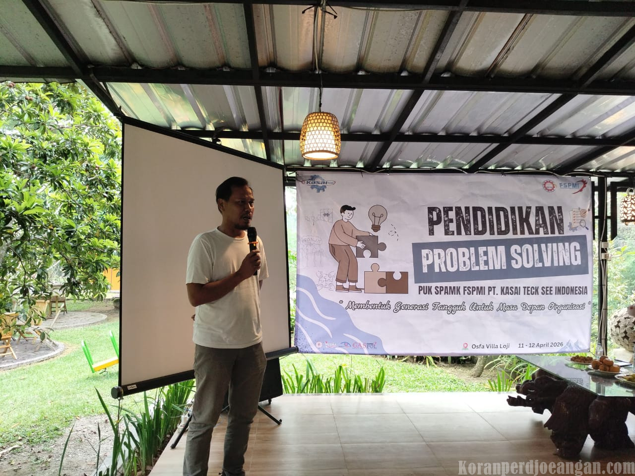 Karawang, KPonline – Dalam kegiatan pendidikan problem solving PUK SPAMK FSPMI PT Kasai Teck See Indonesia yang mengusung tema “Membentuk Generasi Tangguh untuk Masa Depan Organisasi”, yang dilaksanakan di Villa Osfa Loji, Karawang pada 11–12 April 2026, Asmat Serum, S.H., M.H. hadir memberikan sambutan sebagai perwakilan KC FSPMI.