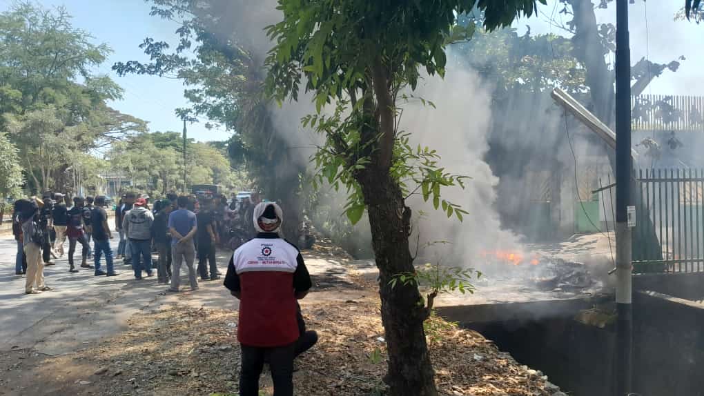 Aksi yang di lakukan oleh pekerja ini dimulai dari pukul 08.00 Wita dengan rangkaian Kegiatan seperti orasi Penyampaian Pendapat dan melakukan Bakar Ban Bekas tanda Perlawanan atas penindasan yang mereka dapatkan serta memasang Spanduk Tuntutan.