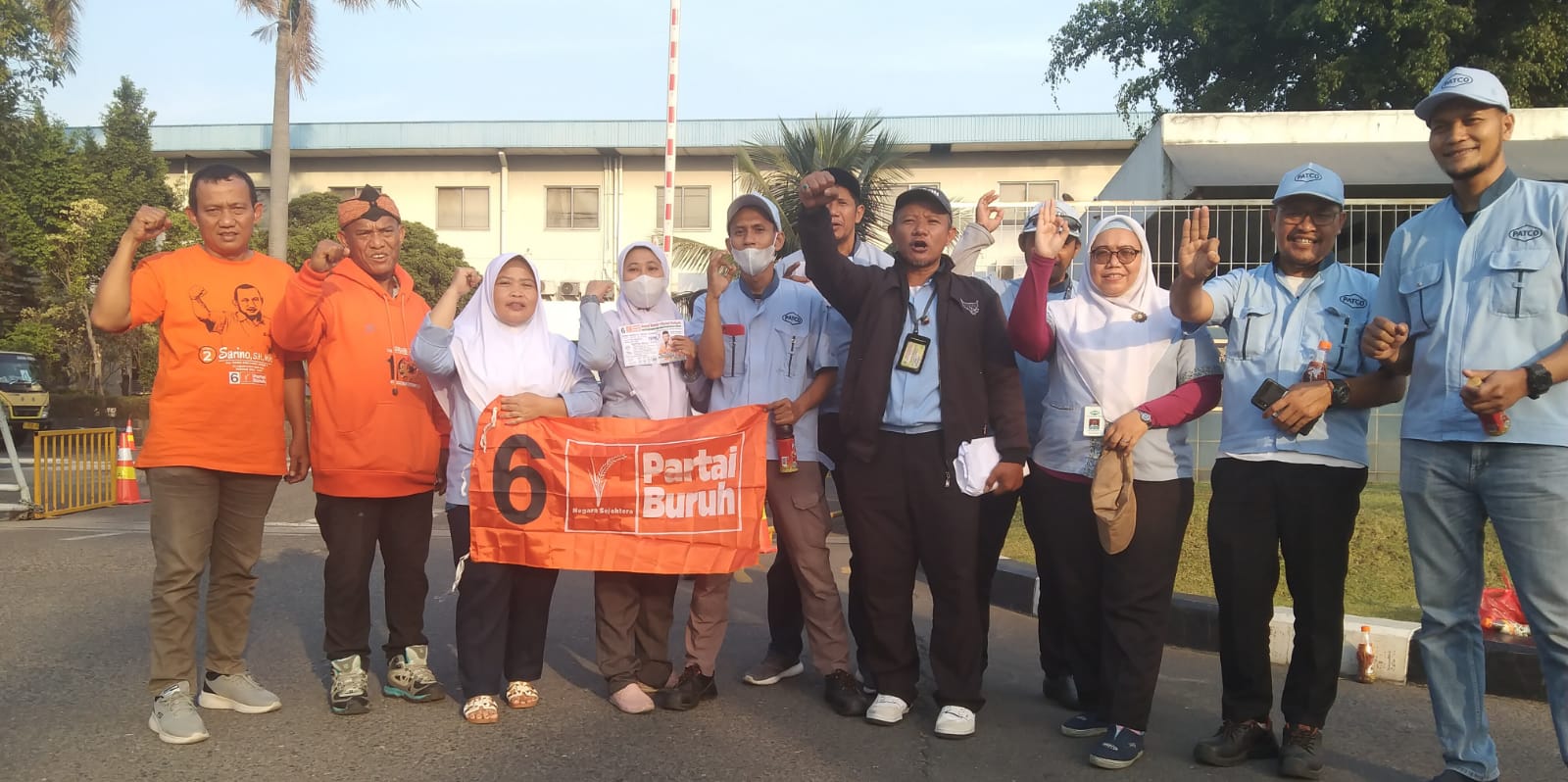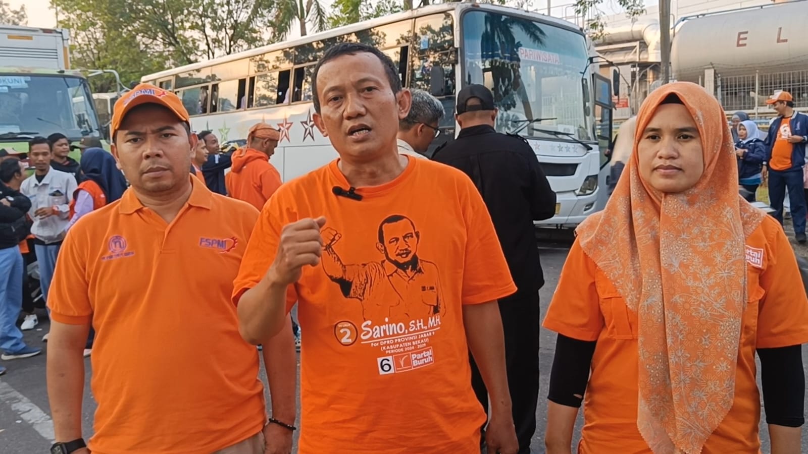 “Selama ini partai-partai lain tidak memperhatikan aspirasi buruh, maka partai buruh jadir untuk memperjuangkan kesejahteraan buruh, semua caleg partai buruh masih bekerja maka pilih dan menangkan partai buruh disemua tingkatan DPRD Kabupaten, Provinsi dan DPR RI,” ujar Sarino.