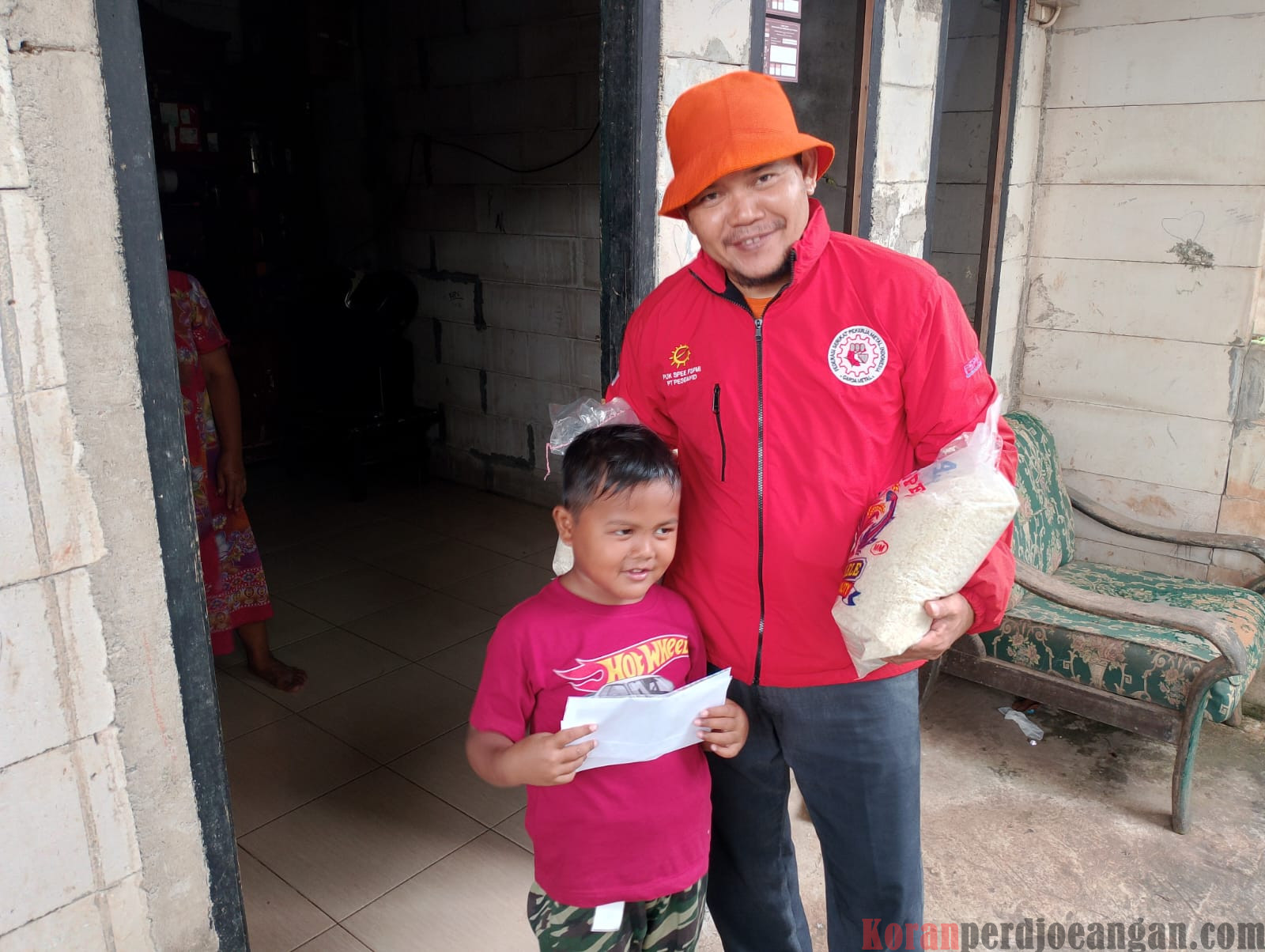 Di antara penerima santunan adalah anak laki-laki dari almarhum Endin, seorang buruh yang pernah bekerja di Panasonic. Dengan wajah polos, anak itu menyampaikan rasa terima kasihnya.