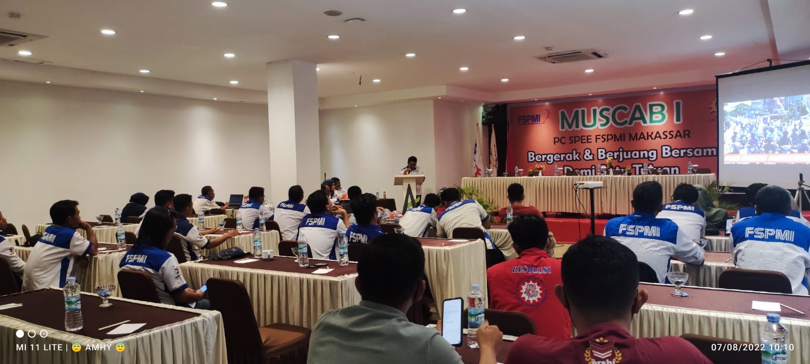 Makassar, KPonline – Ahad, 07 Agustus 2022 bertempat di Arbor Biz Hotel Makassar berlangsung Musyawarah Cabang I Pimpinan Cabang Serikat Pekerja Elektronik Elektrik Federasi Serikat Pekerja Metal Indonesia (PC SPEE FSPMI) kota Makassar, yang dibuka oleh Pengurus Pimpinan Pusat SPEE FSPMI, Ismail Rifai selaku wakil sekretaris bidang organisasi PP SPEE FSPMI.