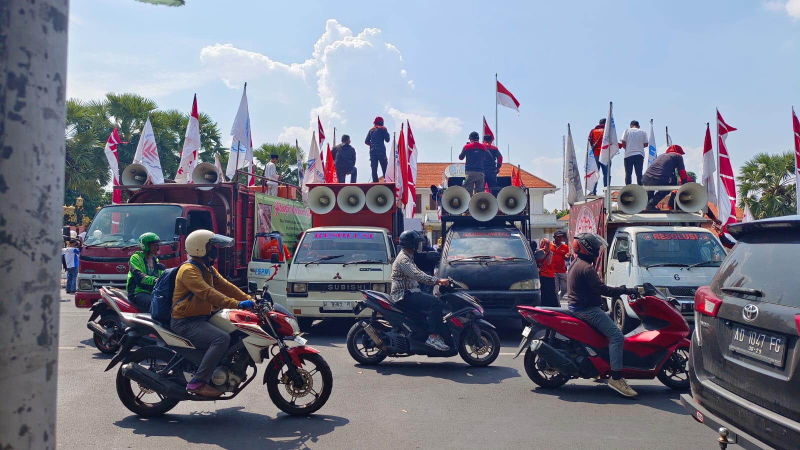 Massa aksi yang telah menjalankan instruksi organisasi sejak pagi, menegaskan persatuan dan semangat perjuangan dalam aksinya. Mereka menyoroti beberapa isu krusial di Indonesia, terutama perlawanan terhadap Undang-Undang Cipta Kerja, dan yang kembali menjadi sorotan tentunya Pemerintah.